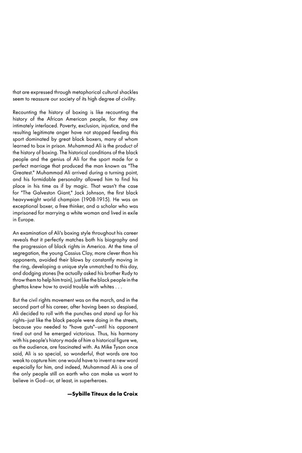 An original graphic novel celebrating the life of the glorious athlete who metamorphosed from Cassius Clay to become a three-time heavyweight boxing legend, activist, and provocateur: Muhammad Ali. Not only a titan in the world of sports but in the world itself, he dared to be different and to challenge and defy through his refusal to be drafted to fight in Vietnam, his rejection of his slave name, and ultimately his final fight with his body itself through a thirty-year battle with Parkinsons disease. Witness what made Ali different, what made him cool, what made him the Greatest.