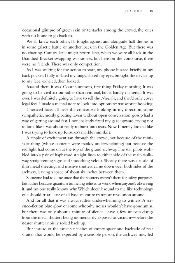 A not-quite-epic science-fiction adventure about a down-on-his-luck galactic pilot caught in a cross-galaxy struggle for survival! Space travel just isn’t what it used to be. With the invention of quantum teleportation, space heroes aren’t needed anymore. When one unlucky ex-adventurer masquerades as a famous pilot who is also a hated public figure, he’s sucked into ever-deepening corporate and political intrigue. Between space pirates, adorable but deadly creatures, and a missing fortune in royalties, saving the universe was never this difficult!