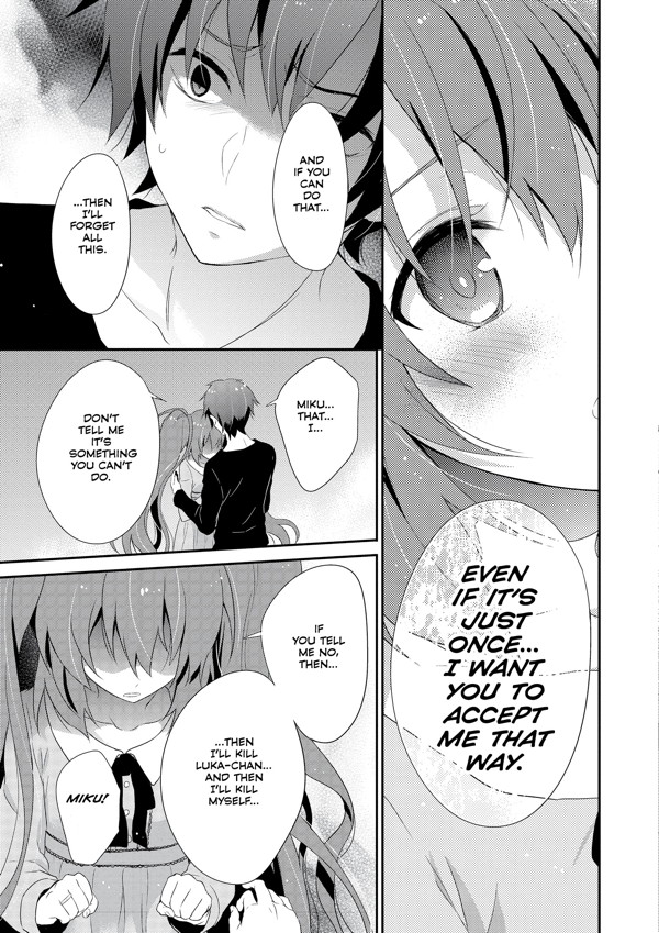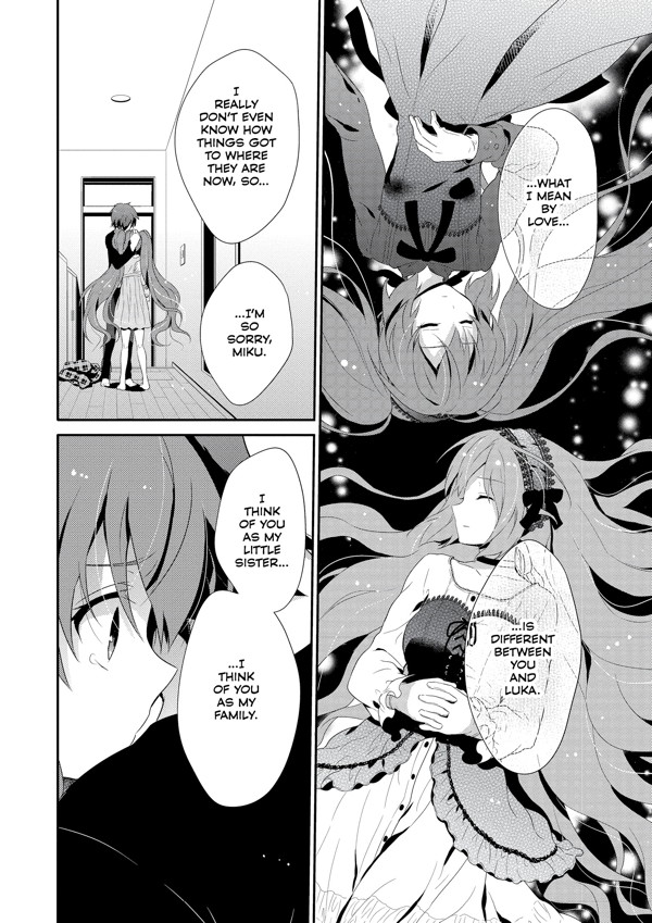 Acute, like the three angles of a triangle. Acute, as in the three sharp points. Acute is the tragic relationship between three Vocaloids: Miku, Kaito, and Luka! Once they were all friends making songsbut while Kaito might make a duet with Miku or a duet with Luka, a love song all three of them sing together can only end in sorrow! Based on the song with over 4.4 million combined views on YouTube and Niconico.