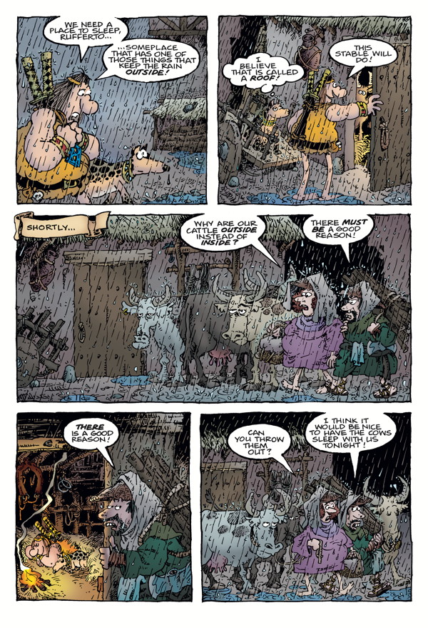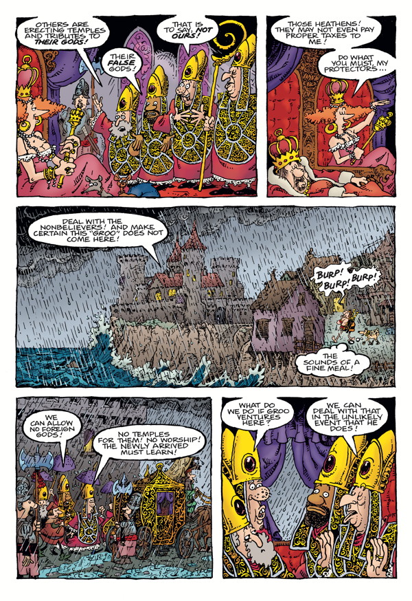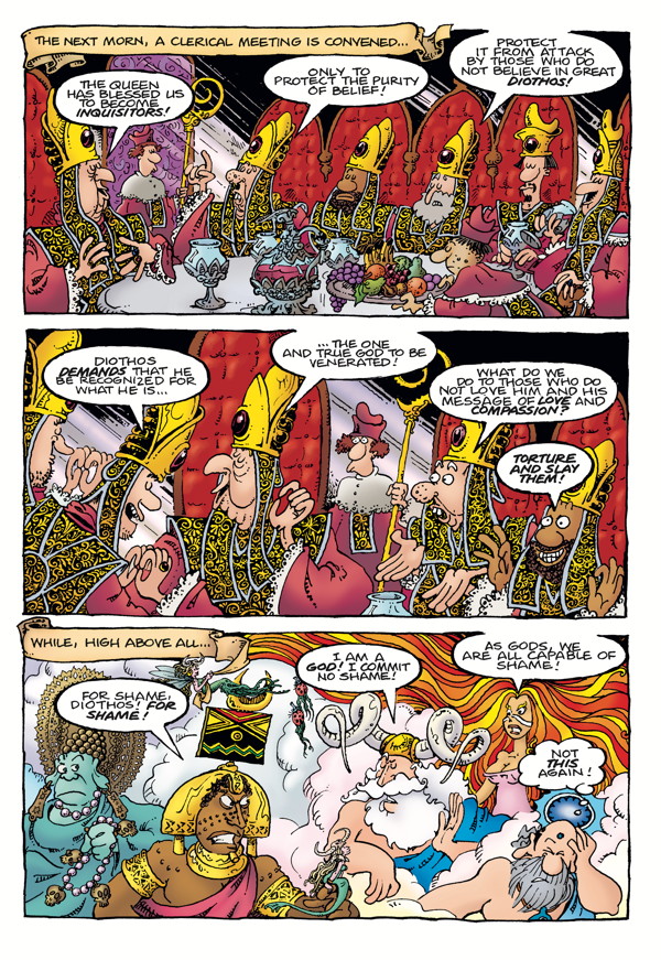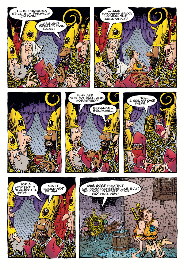 We had the Fray of the Gods. Now we have the Play of the Gods -- a tale of lust for gold, lust for power, and lust for cheese dip. As with all things Groo, it's brought to you by the award-winning team of Sergio Aragonés, ably assisted by the lettering of Stan Sakai and the coloring of Tom Luth. The Gods themselves watch this story from above so it must be good enough for you. This handsome volume collects the four issues of the original series in one package, so you get a lot of Groo doing real stupid things and causing mass destruction. Just what you wanted!