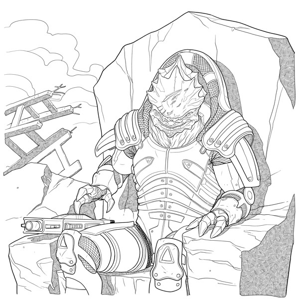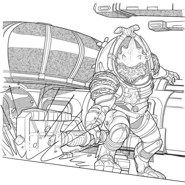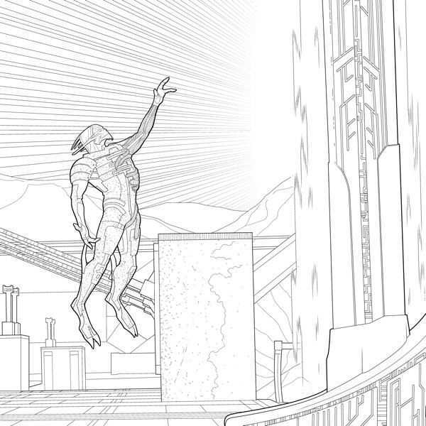 Celebrate the excitement and beauty of the Mass Effect universe with Mass Effect Adult Coloring Book, including art inspired by the upcoming Mass Effect: Andromeda and featuring forty-five black-and-white images that you can color however you choose. This is a must-have for all fans of science-fiction adventure!