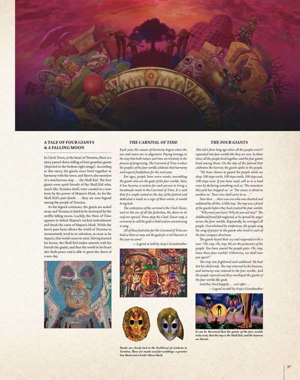 A comprehensive collection of enemies and items, potions to poes, an expansion of the lore touched upon in Hyrule Historia, concept art, screencaps, maps, main characters and how they relate, languages, and much, much more, including an exclusive interview with Series Producer, Eiji Aonuma! This, the last of The Goddess Collection trilogy, which includes Hyrule Historia and Art & Artifacts, is a treasure trove of explanations and information about every aspect of The Legend of Zelda universe!