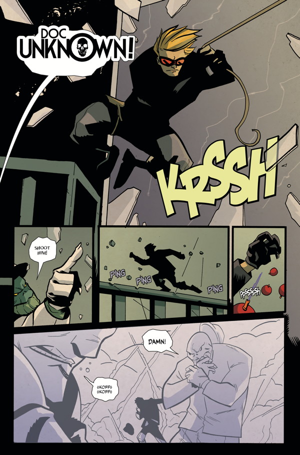 Read as Doc Unknown must protect Gate City from ruthless gangsters, monstrous mobsters, possessed museum attractions, evil secret societies, vampire ninjas, vengeful ghosts, hypnotizing fish-women, and much more!