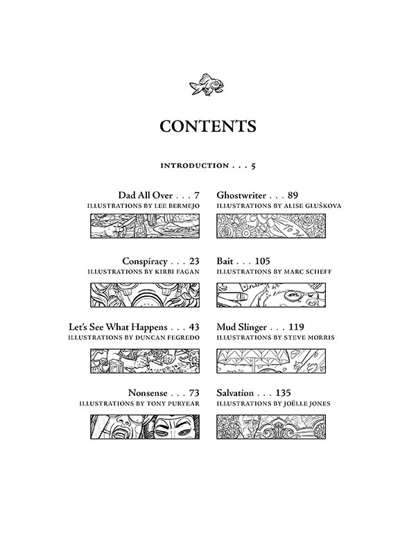 * Contains eight bizarre tales, illustrated in detailed black and white by Joëlle Jones (Lady Killer), Lee Bermejo (The Suiciders), Duncan Fegredo (Hellboy), and more.