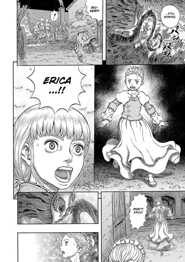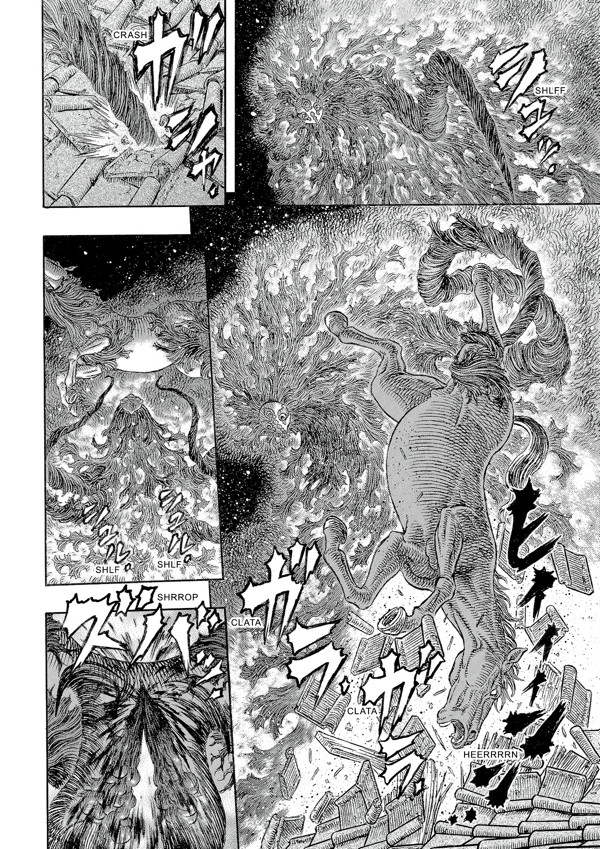 Guts and company reach the isle of Skellig in hopes that elven magic can cure the afflicted Casca. Meanwhile, Guts’s Band of the Hawk comrade Rickert journeys to Falconia, the seat of power for Griffith, the Hawks’ former commander. But the glittering towers of Falconia cast deadly shadows!