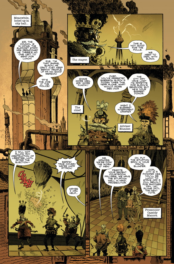 Emerson Black’s superhero identity is no secret: patrolling the night skies as the Black Sinister, he enforces his own brand of psychotic justice, no matter the cost. Joined by his unhinged butler Danby, Emerson protects the citizens of Coal City from kidnappers, gangs, and jaywalkers alike. But who will protect the city from the Black Sinister? And what happens when the mayor hatches a plan to finally rid Coal City of its deranged antihero?