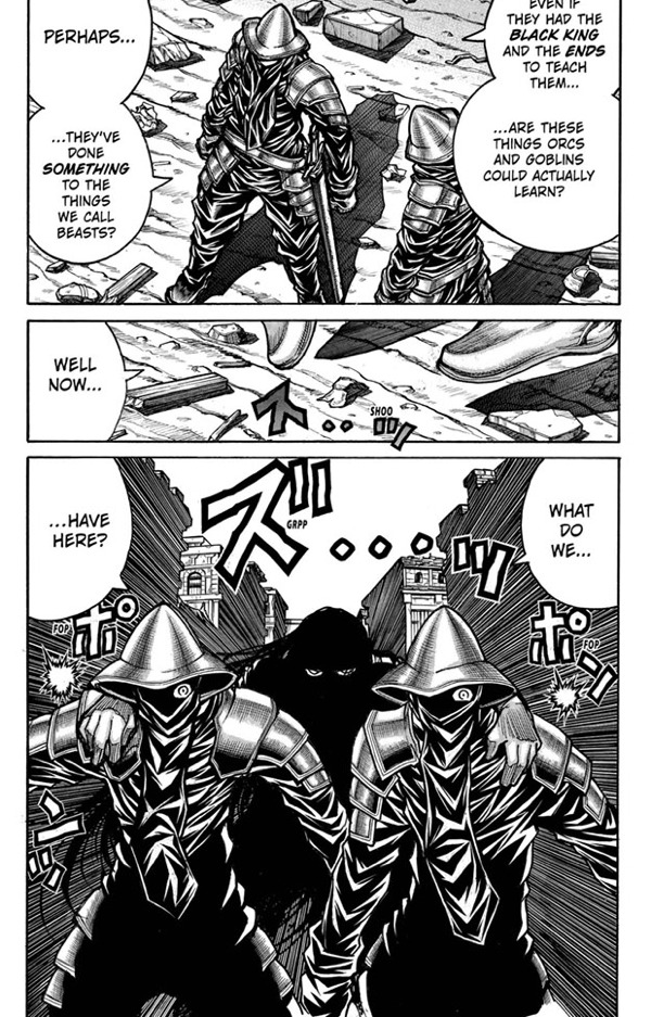 Warriors from Earths history--''Drifters''--battle for control of a wondrous mystic realm. At the eye if the storm is the rancorous Black King who, desiring more than land and resources, is uniting this worlds non-human races for a single horrific purpose: the absolute genocide of humanity!