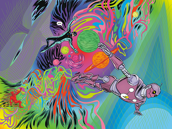 Collects X-Ray Robot #1-#4 and features a sketchbook section and pinups by Chris Samnee, Greg Smallwood, Tradd Moore, and David Rubin.