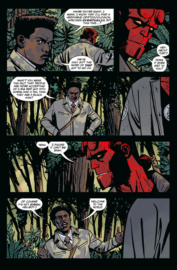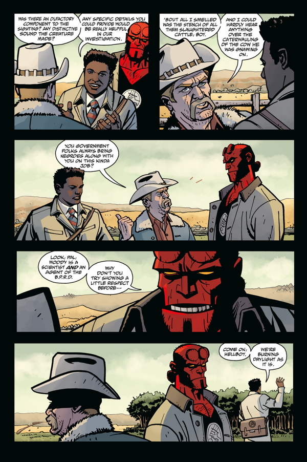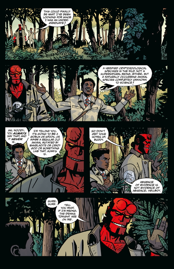 Hellboy encounters unseen predators, strange cases of spontaneous combustion, and a weapon at an Air Force base that is more than it seems.