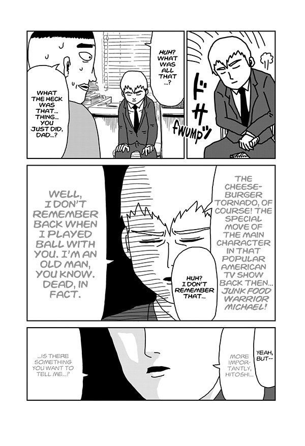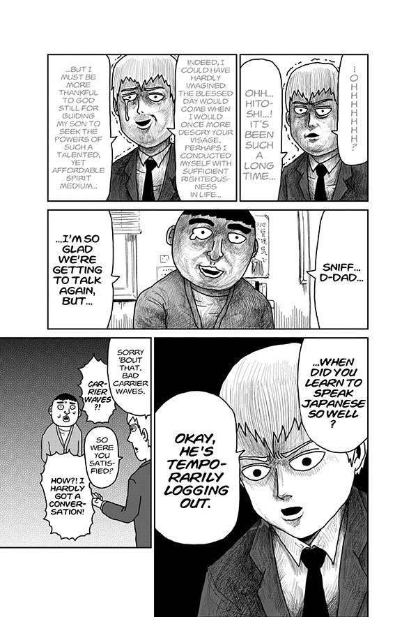 In a showdown with Black Vinegar Middle Schools shadow gang leader, Teru, Mob sticks to his policy of nonviolence and refrains from using his powers--and gets knocked out! The fight seems over for Mob . . . but something then awakens in Mob, beyond the confines of his conscious mind! And in the aftermath, a new story develops with Ritsu, Mob's conflicted younger brother who enjoys the social success Mob desires . . . yet still longs for what Mob has that Ritsu lacks--psychic power!