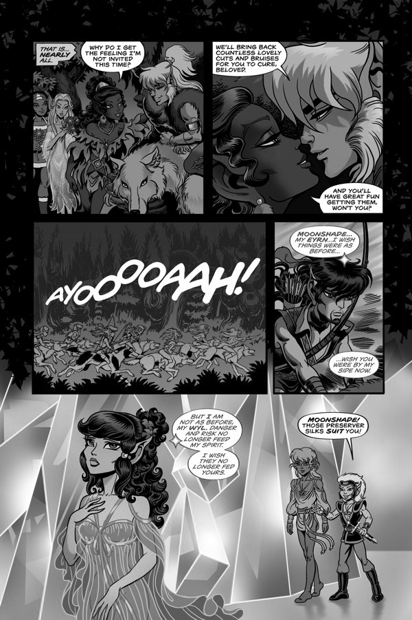 Generation after generation, for thousands of years, the elves of the World of Two Moons sought refuge from the savagery of their primitive planet. For a while, it seemed they had found it in the legendary Palace of the High Ones. Within, Chief Cutter and his tribe of Wolfriders avoid nature's wrath and the threat of an ever-expanding human population. Yet comfort comes at a price. The seductive magical influence of the Palace may lead to the feral elves undoing and Cutter realizes he must embark upon the most important quest of all! Collects ElfQuest: The Final Quest volumes 1-4.