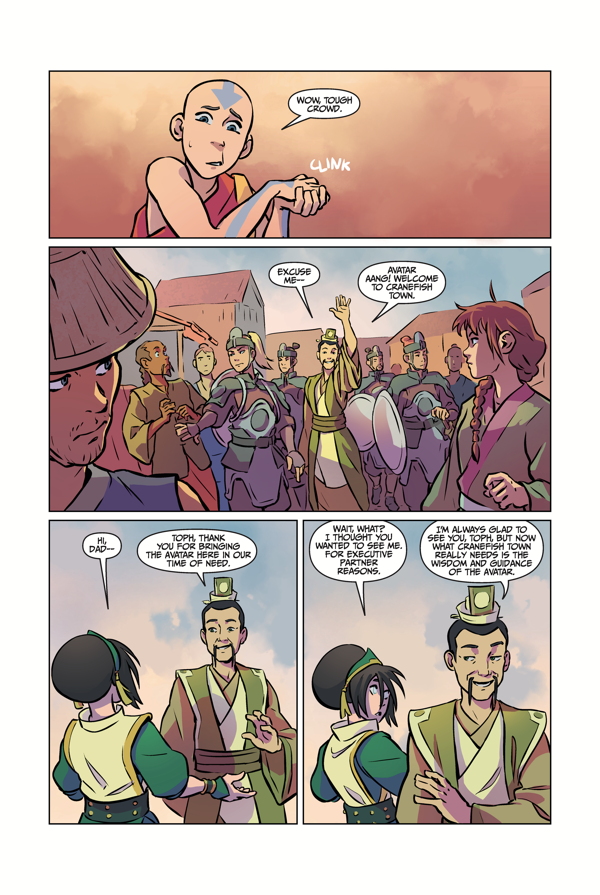 When Aang, Katara, Sokka, and Toph return to Earthen Fire Industries--the factory owned by Toph's father--Aang is surprised when their arrival is met with a cold shoulder. As soon as the team is asked for help at a business council meeting, the reason for the slight becomes clear: a massive bender-versus-non-bender conflict has gripped the town and is threatening to turn violent. In order to heal the divide and save the town, Aang and the team will all face tough decisions about power and identity that could tear them apart. Collects Imbalance parts 1-3.