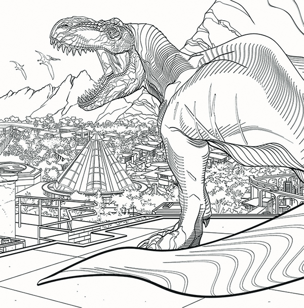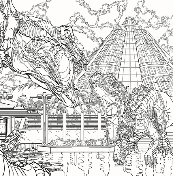 This book includes forty-five original pieces of art from a variety of artists depicting all of your favorite moments each paired with corresponding quotes from the film! Color all of the epic film moments, from the beautiful and fun-filled park featuring the Gyrosphere Valley and the petting zoo, to the desolate and destroyed environment once the Indominus rex escapes!