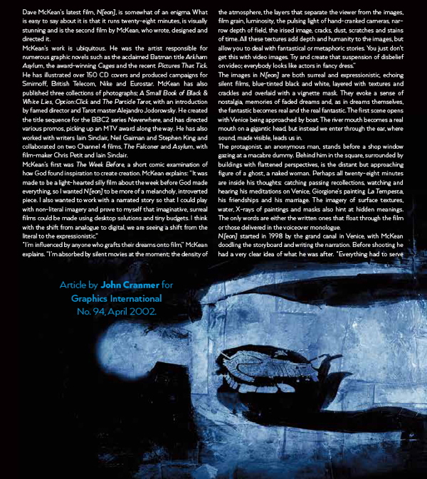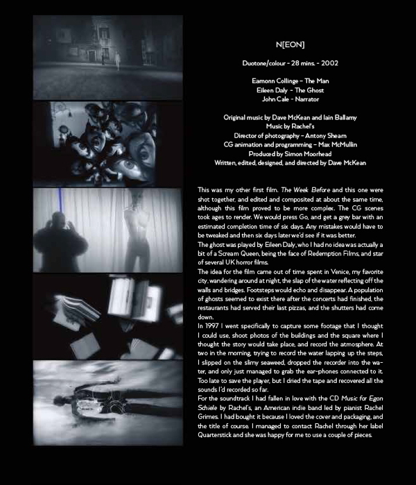 Dark Horse proudly presents Dave McKean's short cinema on Blu-Rray included in a 9 1/2'' x 11'' hardcover book featuring photos, posters, stills, drawings, and more. A must-have for McKean fans!