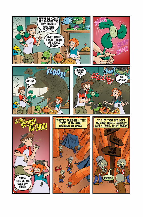 Dr. Zomboss creates an army of teeny zombies to try and sneak up on all the brains in Neighborville! To battle these minuscule menaces, the plants, Crazy Dave, Patrice, and Nate must shrink themselves to have any chance at defeating the zombies. But how will Neighborville's insects react to the invasion of their turf-of-the-tiny? And will this miniature zombie invasion mean the party for Crazy Dave's two-hundred-year-old pants gets canceled?