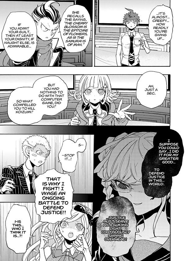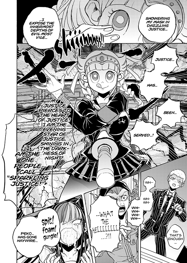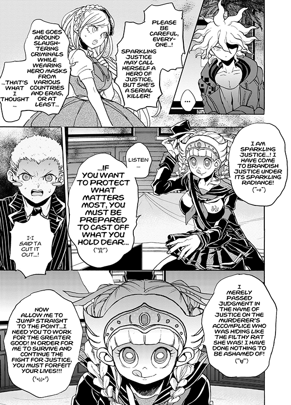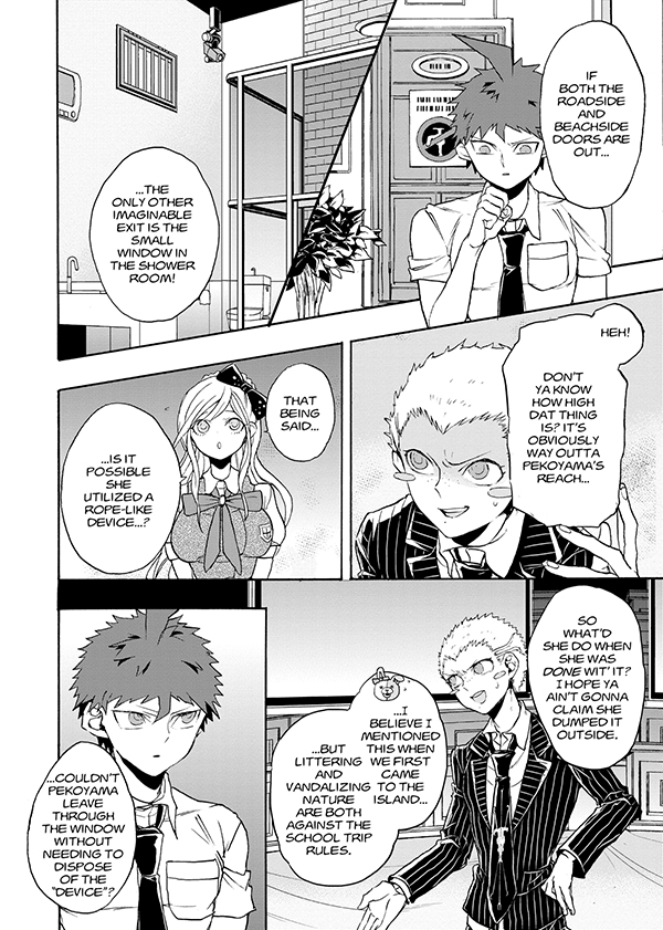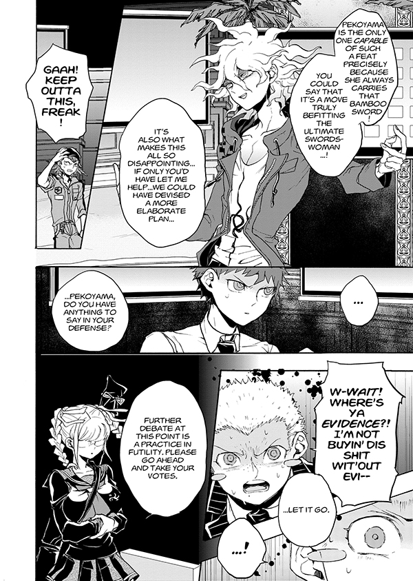 The conclusion! Caught in the execution procedure by mistake, Fuyuhiko desperately requires emergency aid. But never one to let an evil opportunity slip by, Monokuma uses the medical theme to claim a corpse is required to cure the Despair Disease! But they can't kill someone to save themselves, can they . . . ?