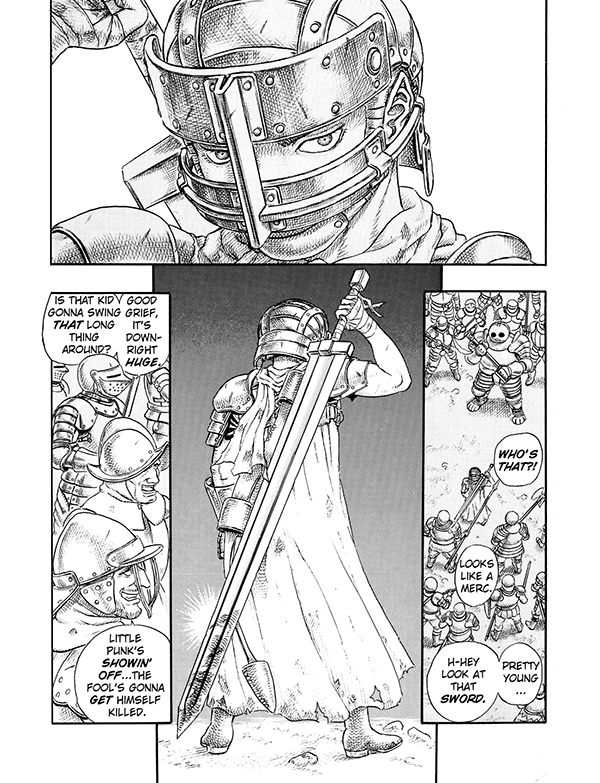 The ultimate adult fantasy manga, now in 7''x10'' hardcover editions! Raised in torment, young Guts is hardened into a fearsome warrior, drawing the attention of the charismatic Griffith, commander of the elite Band of the Hawk. This crossroads will take Guts to fame and glory . . . and damnation! Collects Berserk volumes 4, 5, and 6.