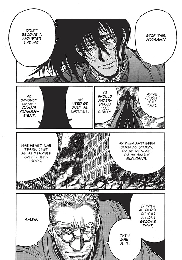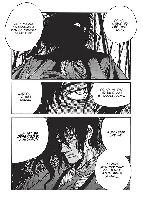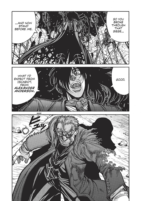 The international hit manga series concludes in this deluxe hardcover edition, collecting Kohta Hirano's action-horror epic for the first time in its original 7x10 serialized format. Includes a cover gallery, author notes, character profiles, and Hirano's zany meta short stories. The curtain rises on the final act of the apocalyptic war between vampires, werewolves, fanatics, and mercenaries. Amidst the grisly wreckage that is now London, the champions of light and darkness face off in a final showdown that will determine the humanitys future . . . or its downfall!