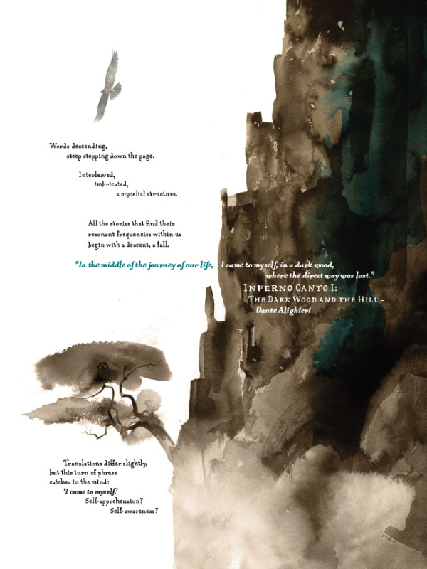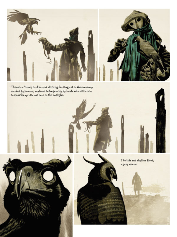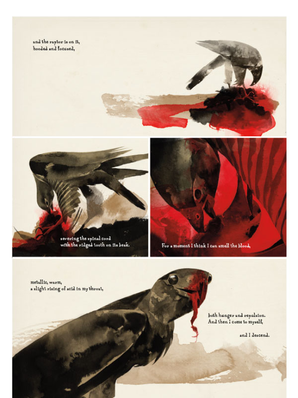 The Raptor, Sokol, flickers between two worlds: a feudal fantastical landscape where he must hunt prey to survive, and Wales in the late 1800s where a writer of supernatural tales mourns the passing of his young wife. He exists between two states, the human and the hawk. He lives in the twilight between truth and lies, life and death, reality and the imagination.