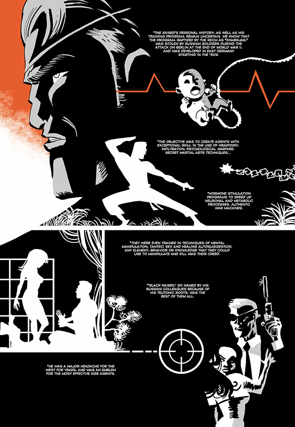 The Black Kaiser, a name whispered in dark corners amongst power czars across the globe. A cold knife in the dark. A secret agent. Delve into the origin of the most feared assassin as his current mission lands him on American soil and in direct conflict with the nefarious agency known as the Damocles Initiative.