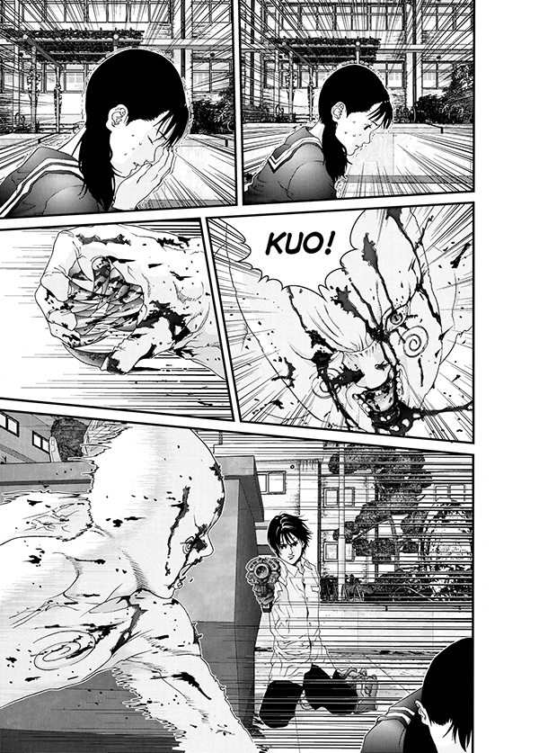 Kei Kurono's work as a Gantz fighter is a nightmare, but his personal life is looking up, with a new ladylove opening his heart. But when his beloved is threatened by a Gantz-obsessed schoolmate on a shooting rampage, Kei must face the killer without his Gantz suit for protection!