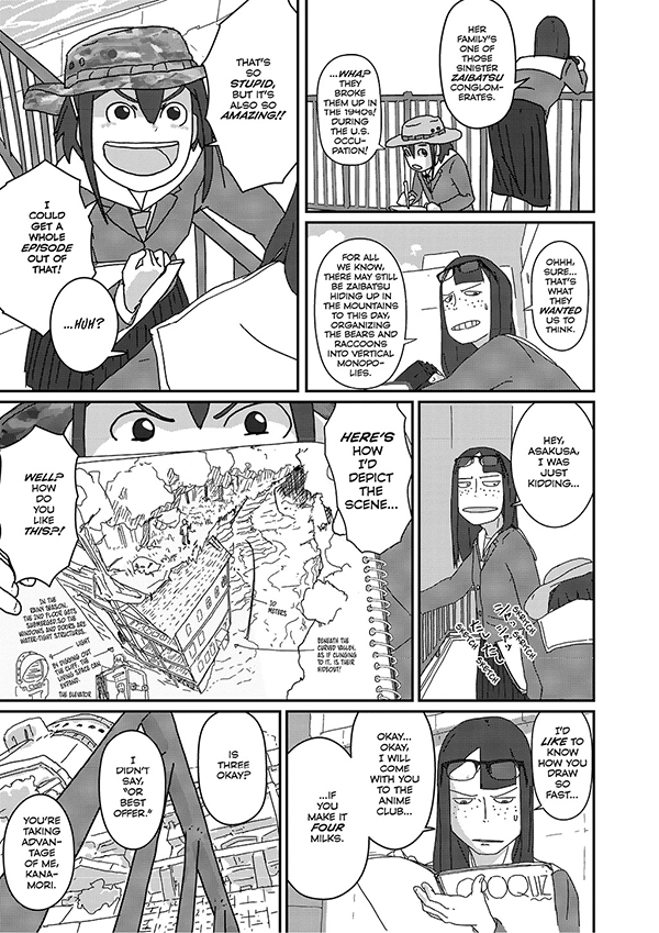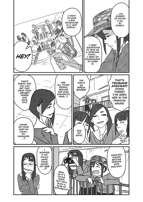 Asakusa loves to design worlds. Mizusaki loves to animate. Kanamori loves to make money! And at Shibahama High, they call them Eizouken--a three-girl club determined to produce their own spectacular science fiction anime! But with no budget from their school and a leaky warehouse for a studio, Eizouken is going to have to work hard and use their imagination . . . the one thing they've got plenty of!