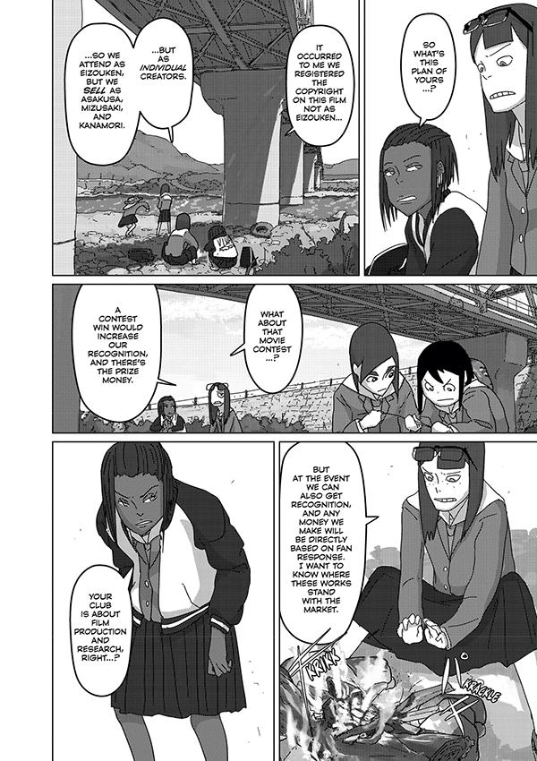Asakusa wants to create ''the greatest world'' in anime through her imaginative images . . . but there's so much more to a world than pictures, so now the Eizouken trio has become a quartet as their newest recruit, Doumeki, sole member of Shibahama High's Sound Club, leads them on a new adventure into the wild to harvest ambient audio! And even as Kanamori tries to find a route for them through the minefield of social media, Mizusaki and Asakusa are going to have to meet the fans in person at a local convention . . .