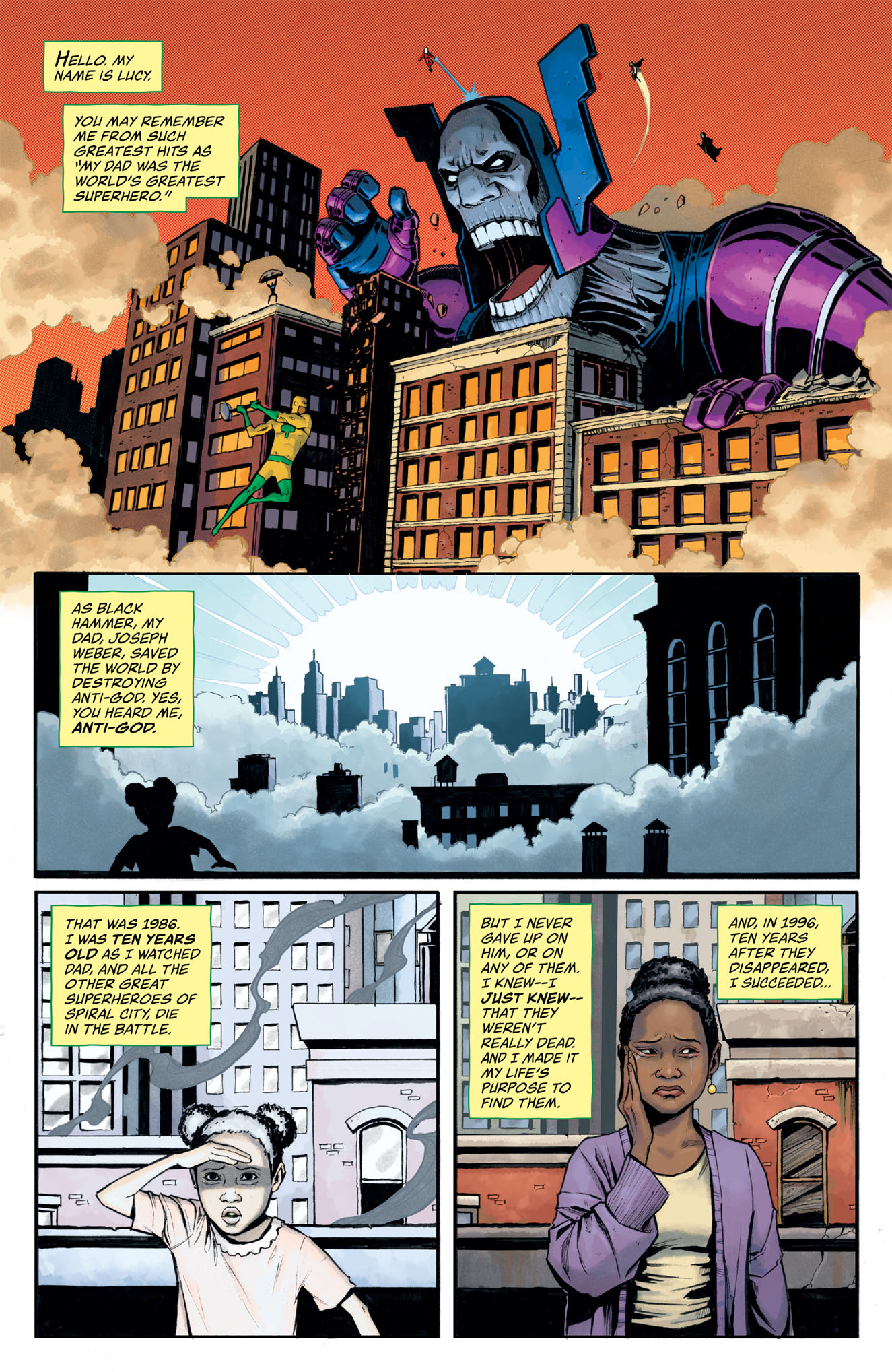 Years after Black Hammer and the rest of Spiral City's greatest heroes seemingly died defeating the cosmic despot known as Anti-God, Lucy Weber, the daughter of Black Hammer, took up his mantle and carried on the legacy of her father.