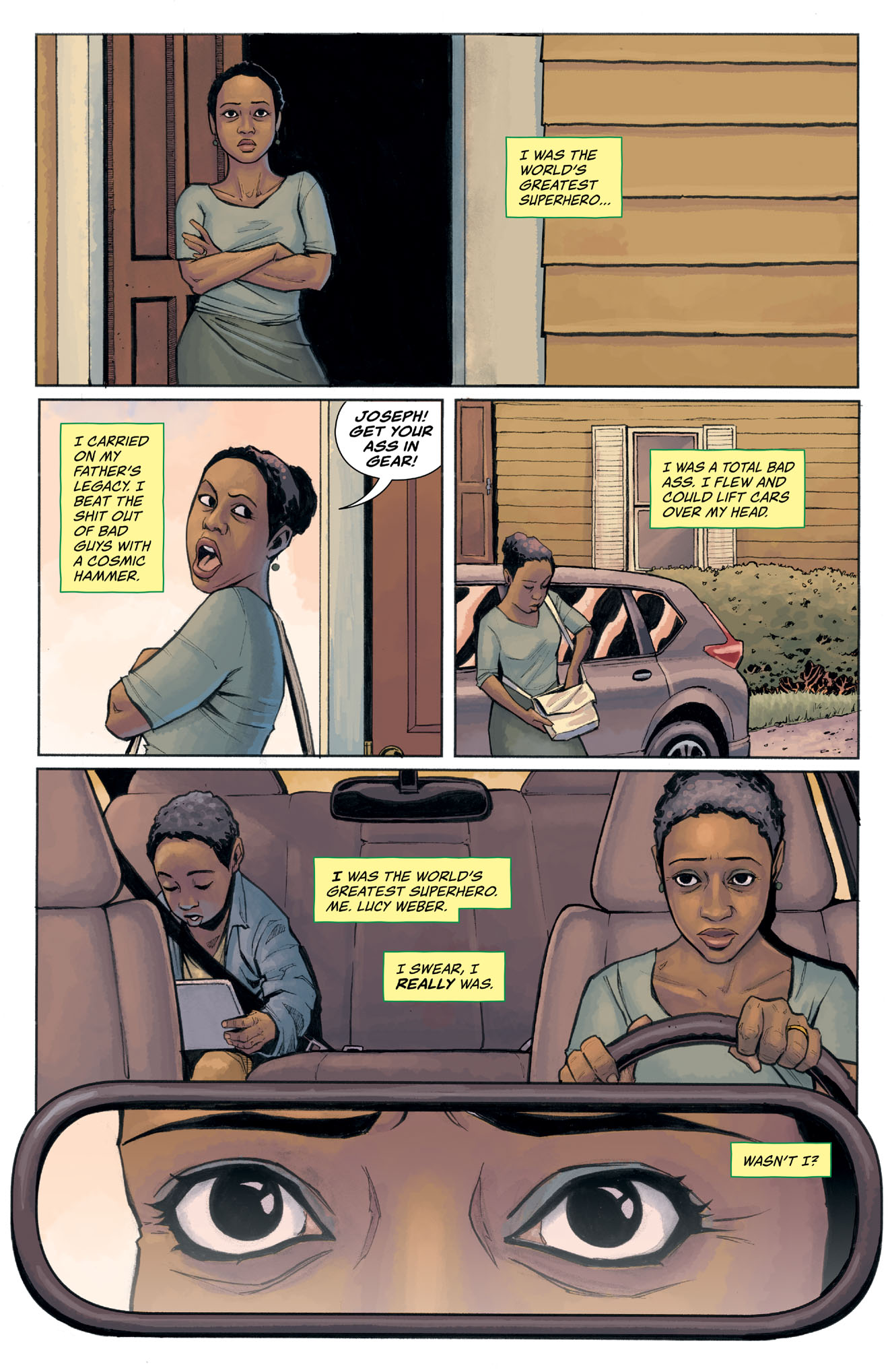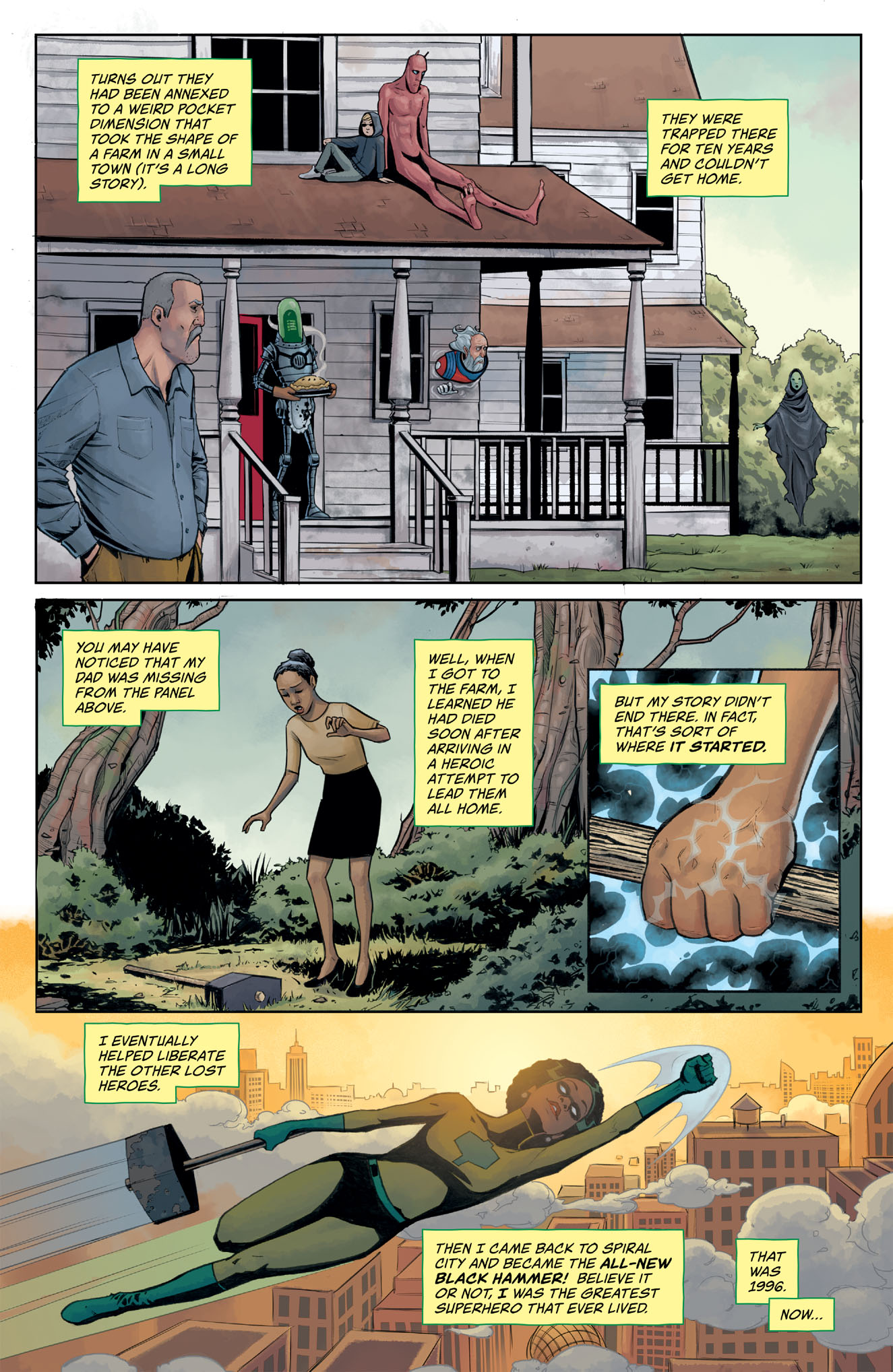 Years after that, Lucy, and the world, have moved on. Living in the suburbs of Spiral City, Lucy is married and has children. But all is not blissful. Her marriage is falling apart, her job has reached a dead end, and for mysterious reasons, she hasn't picked up the hammer in years. But, as her domestic life begins to crumble, the secrets of the last twenty years, and the reasons Lucy really gave up being Black Hammer, begin to resurface, threatening her family, and the peace she has tried hard to find for herself.