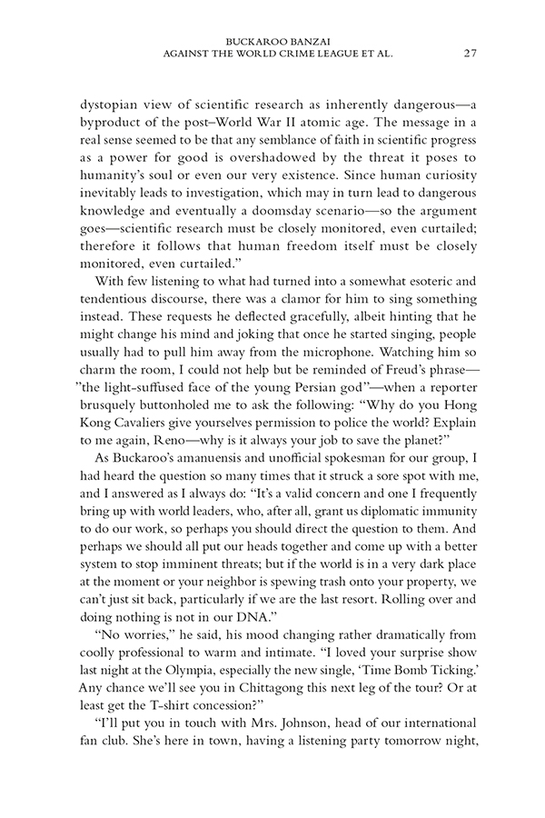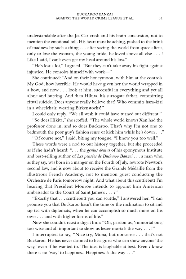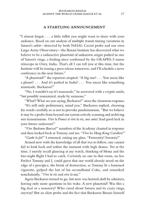 * This is the adventure that was teased at the end of the original Buckaroo Banzai film!