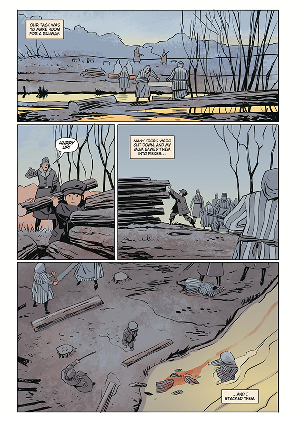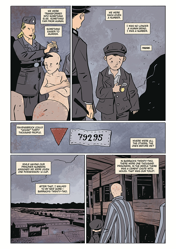 The testimonies of six real survivors of the Holocaust are portrayed in comics, illustrating the persecutions in the Ghetto, the dehumanization in the concentration camps, and the industrial-scale mass murder taking place in the extermination camps.
