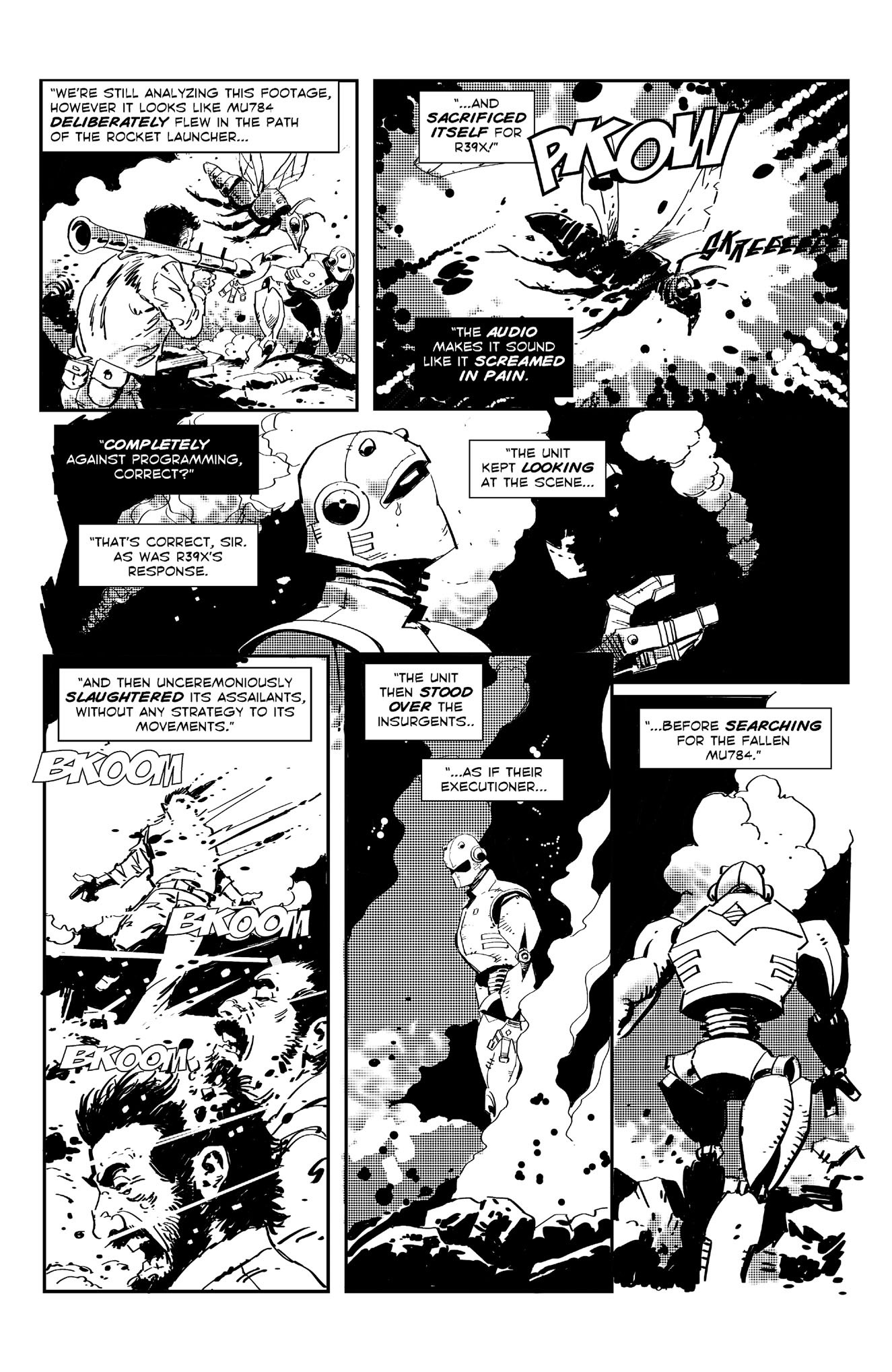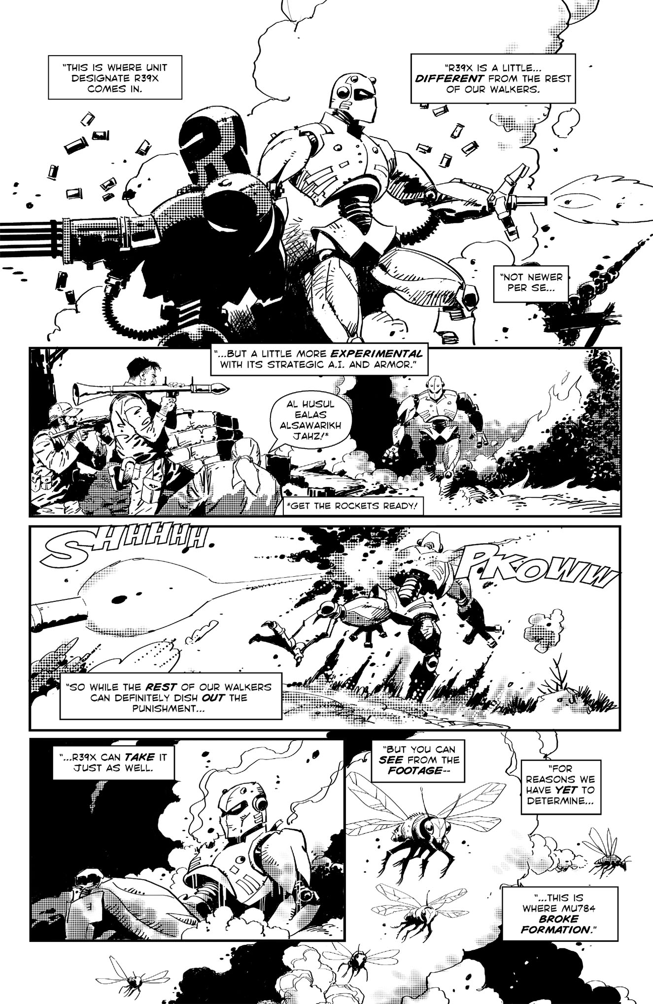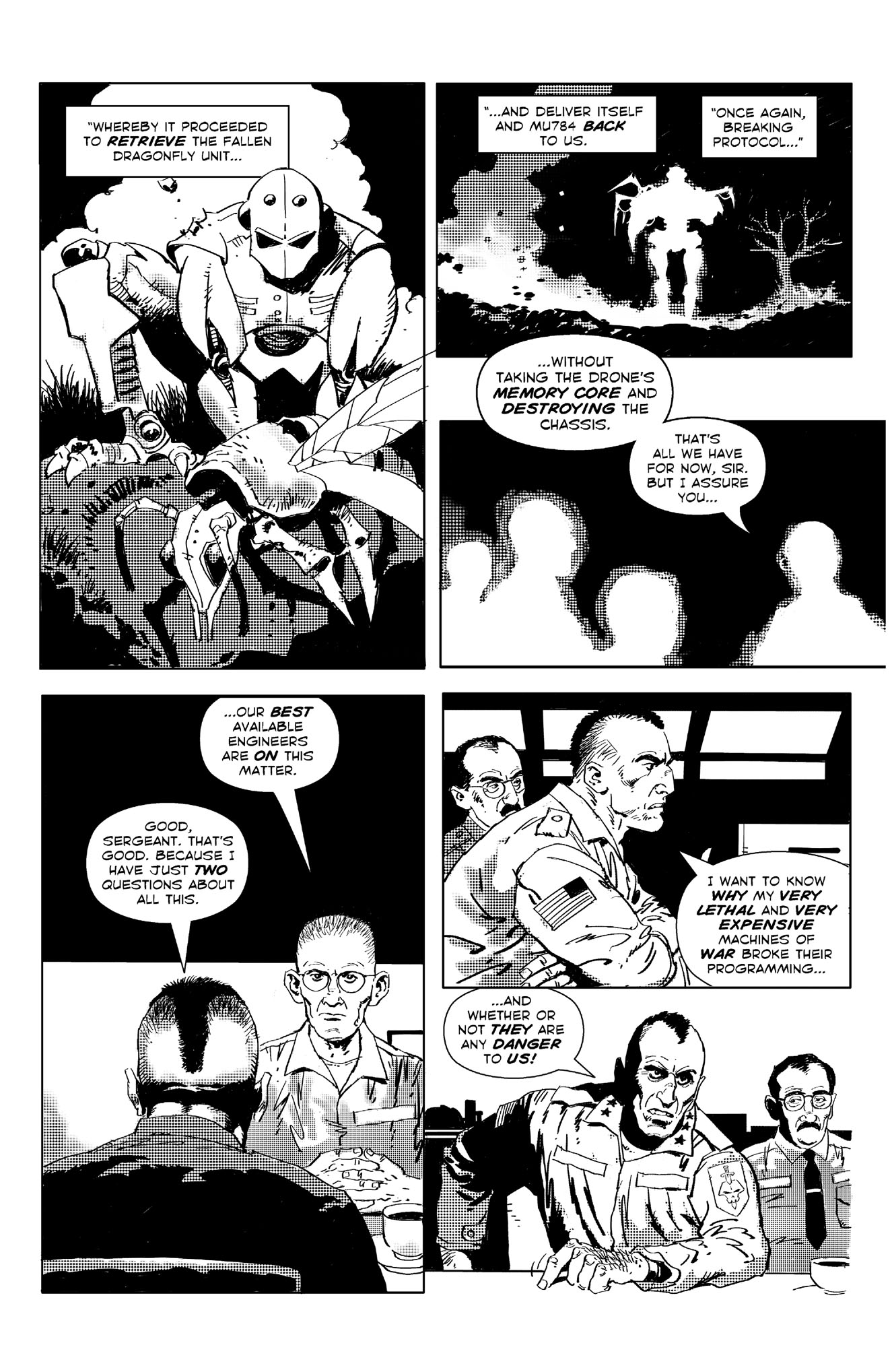 Two renegade AI minds want to make conversation--not war! When a bipedal, independent robot soldier makes a unique connection with an injured, flying drone, they flee the warzone they're in to seek lives of their own. Their military builders want to destroy them, while a sympathetic pair of humans tries what they can to free the errant 'bots from military service! Steve Parkhouse, artist and co-creator of Resident Alien, joins writer Geoffrey D. Wessel in this thrilling tale of friendship and survival!