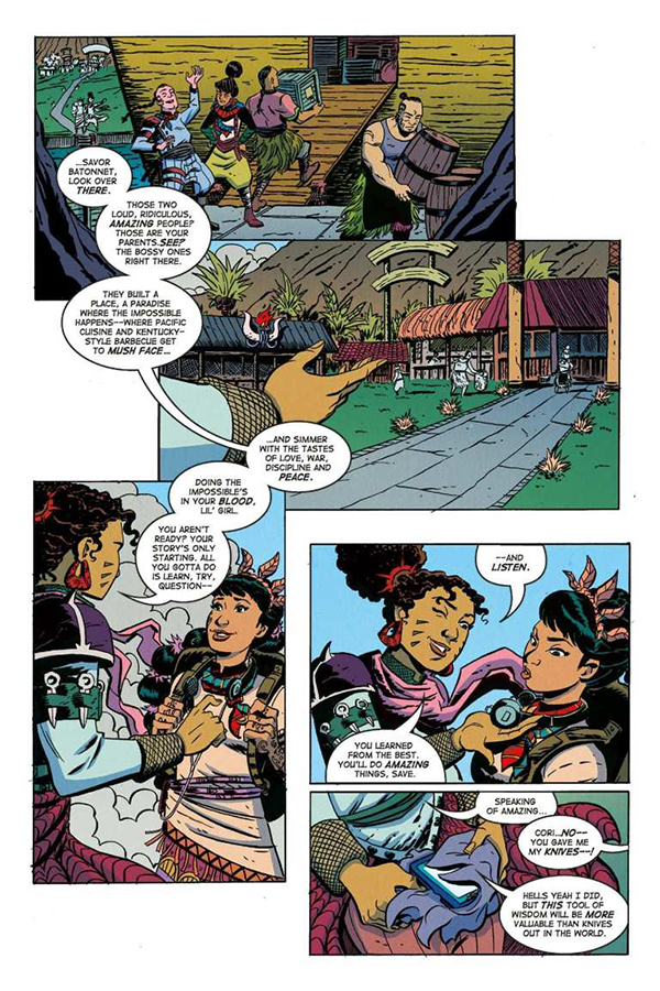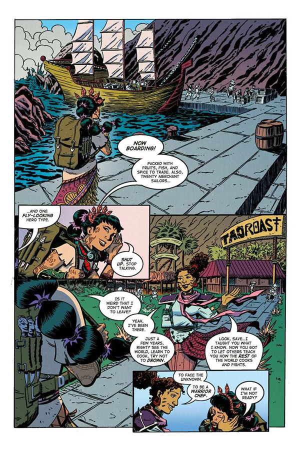 Discovering a band of demon cooks has captured her island home, warrior chef Savor Batonnet must undertake her very first quest as a newly minted hero! But is being called a ''hero'' and possessing a handful of skills all the ingredients Savor needs to face five deadly restaurants, build the ultimate knife, save both her parents, and the woman she loves? By creators Neil Kleid (Brownsville, Kings and Canvas, Powers: The Secret History of Deena Pilgrim), John Broglia (God Complex, Zombie-Sama) and Frank Reynoso (Kings and Canvas, The Sweetness).