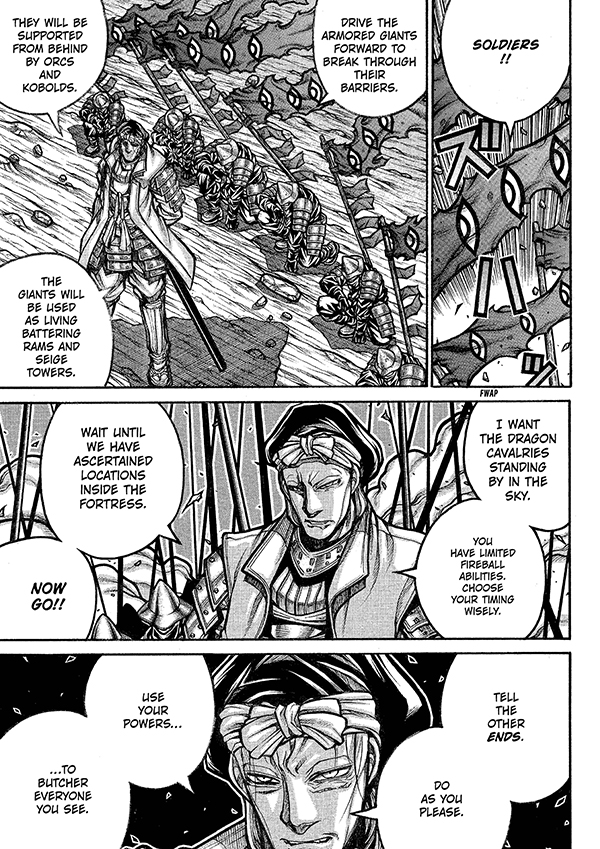 The Black King's horde of goblins, giants, and dragons descends upon the fortifications of humanity. Dug in deep, and with the superior strategic acumen and weaponry provided by Earth warlord Oda Nobunaga, the human races have a solid chance for victory, but the most dangerous enemy may come from within!