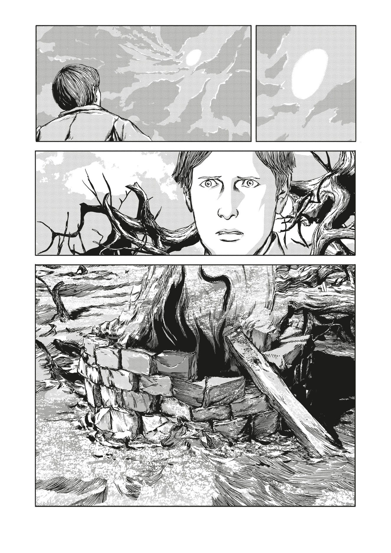 What had been a mystery to the professors gradually becomes a horror for the Gardner family as first, bizarre lightning disintegrates what remains of the cosmic visitor, and then their crops begin to come in strangely—fruits big and bountiful, but bitter and repugnant to eat. Then the unnatural blight spreads to the animals…and finally, to the minds and bodies of the Gardners…twisted by the colour out of space.