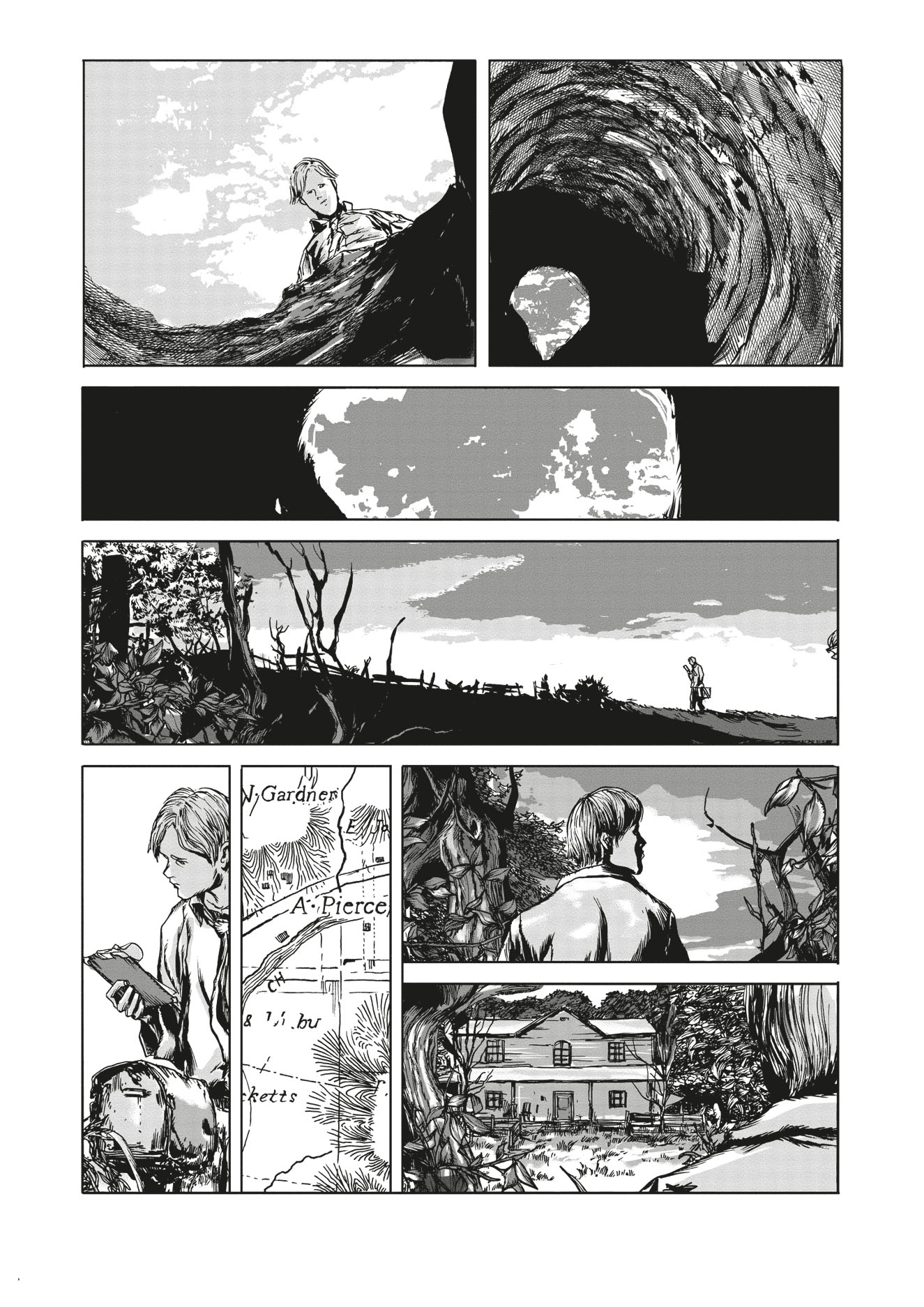 The surrounding landscape is weirdly tangled and overgrown, but at the very center of the isolation are five acres where nothing lives and nothing remains, but a fine gray ash unstirred by the wind. What turned this farmland into a sterile, blasted heath? It happened long ago, the visitor learns from aged survivor Ammi Pierce, when in 1882 a visitor fell out of a clear blue sky, trailing smoke like a dragon.