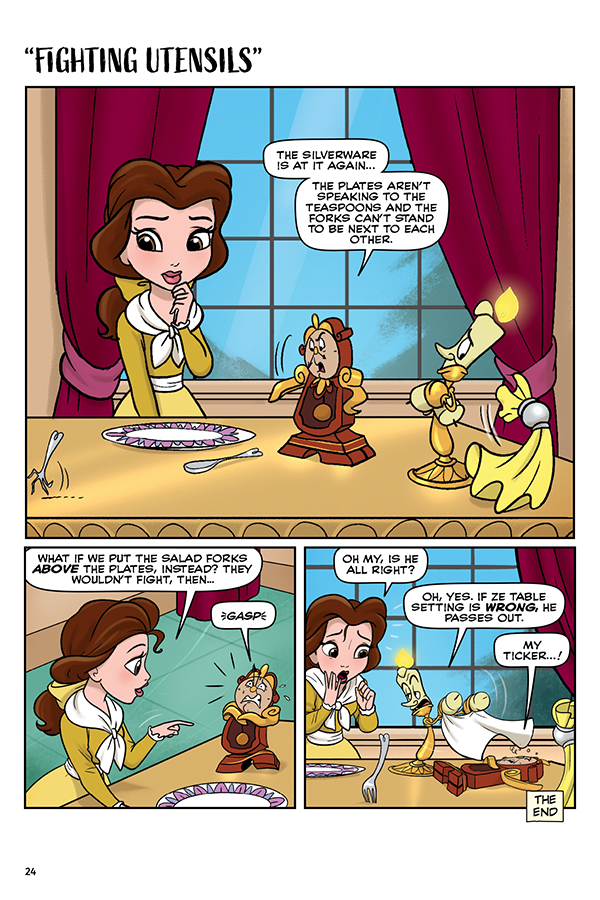 A collection of light-hearted and laughable Disney Princess comic stories! Follow the Disney Princesses in a wide array of adventures in unique settings! Includes a few never-before-published stories, and new infographics for you to ''meet'' the princesses featured on the cover!