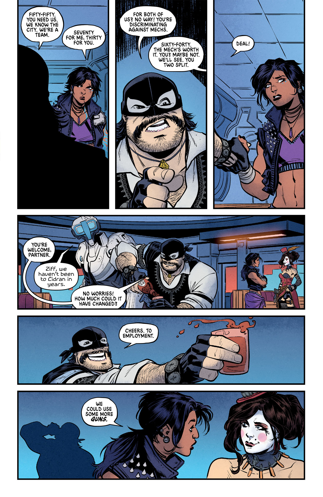 Written by Amy Chu (Carmilla: The First Vampire, Red Sonja) with cover and interior art by Mike Norton (Hellboy and the B.P.R.D. 1956, Revival), the creative team behind this series also includes Borderlands comics veterans colorist Heather Breckel (Tiny Tina’s Wonderlands: Land of the Giants, Plants vs. Zombies) and lettering team Deron Bennet & AndWorld Design (Tiny Tina’s Wonderlands: Land of the Giants, Masters of the Universe: Revelation). This powerhouse crew assembles to tell the story of a mission unlike any other—because there is no one quite like Moxxi!
