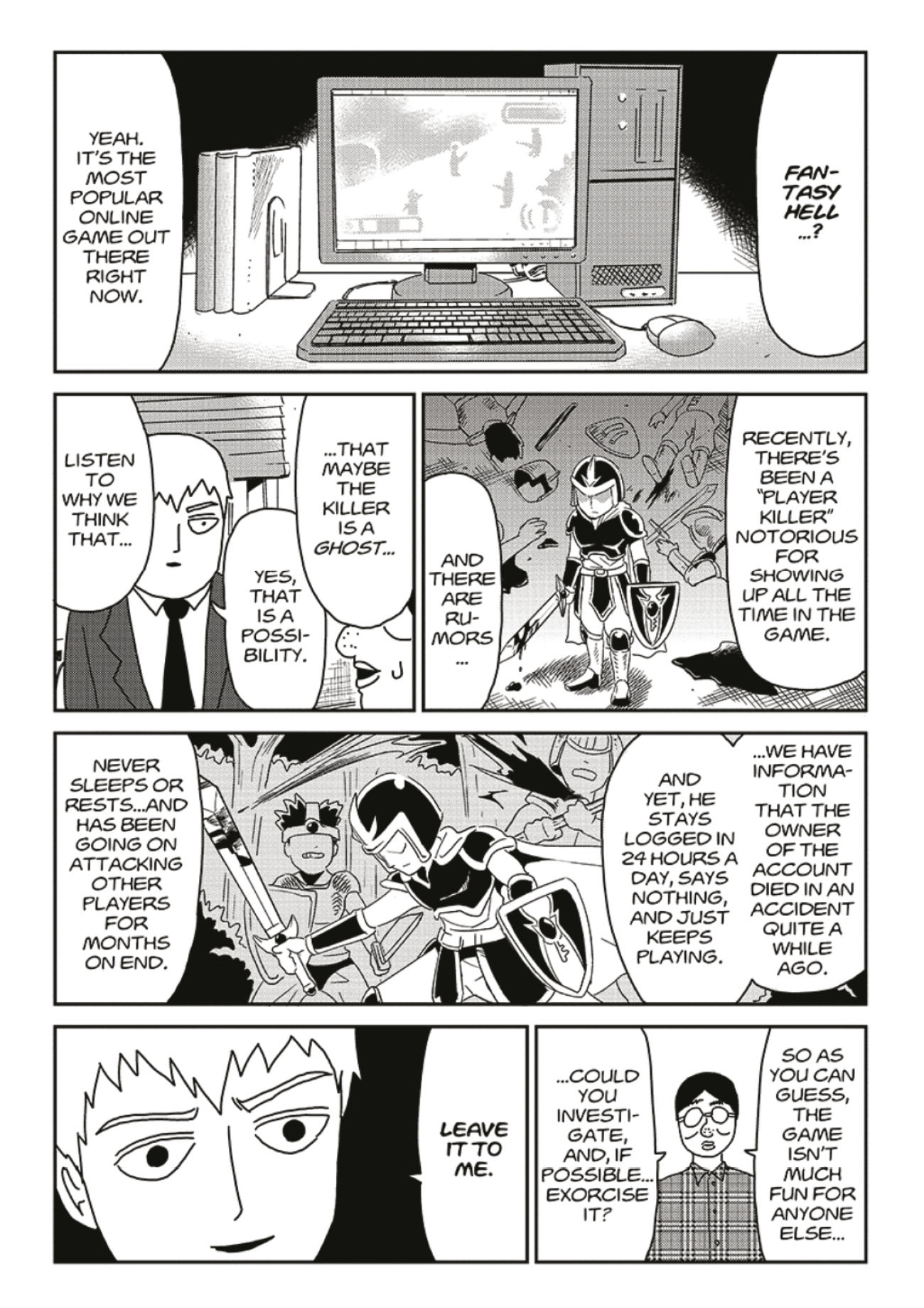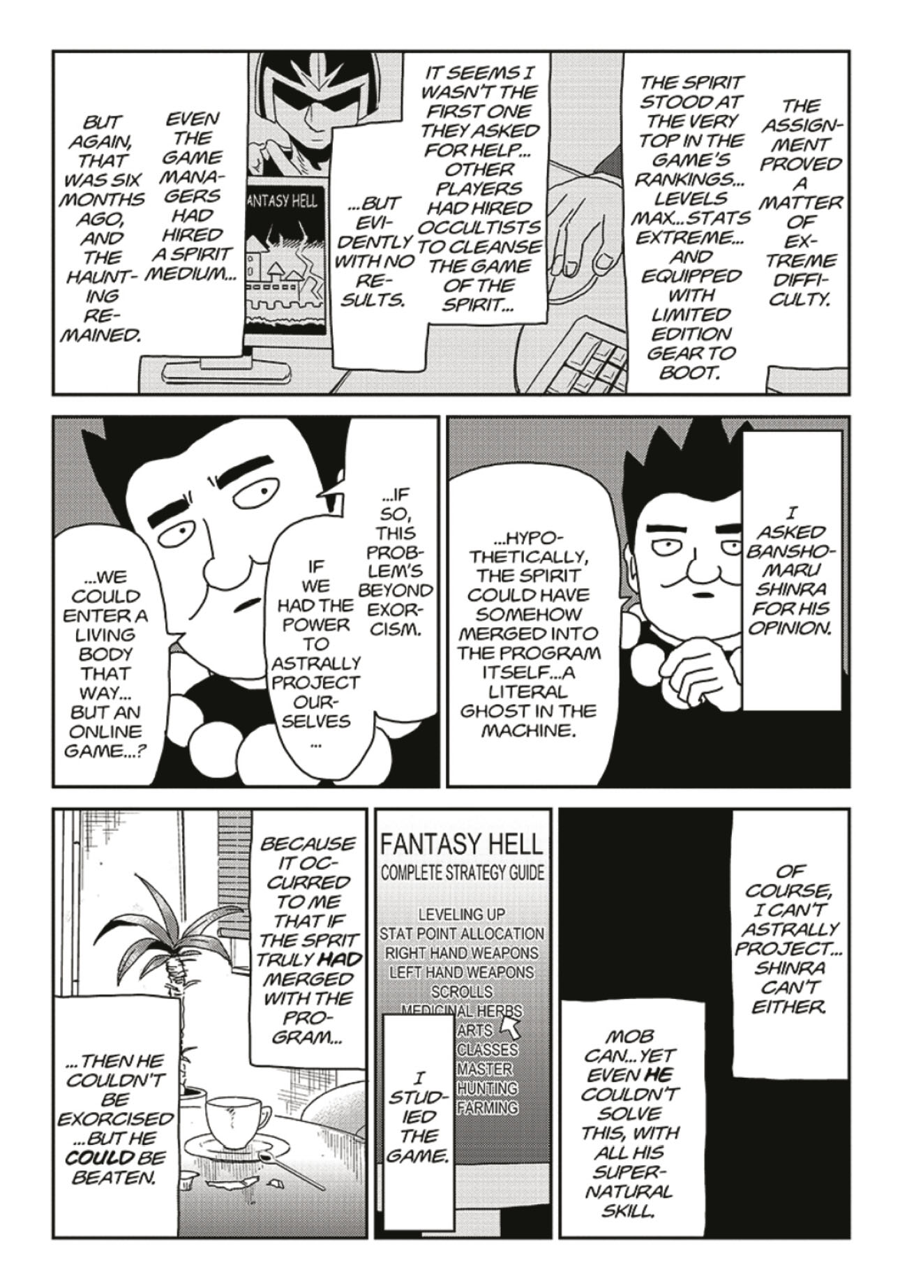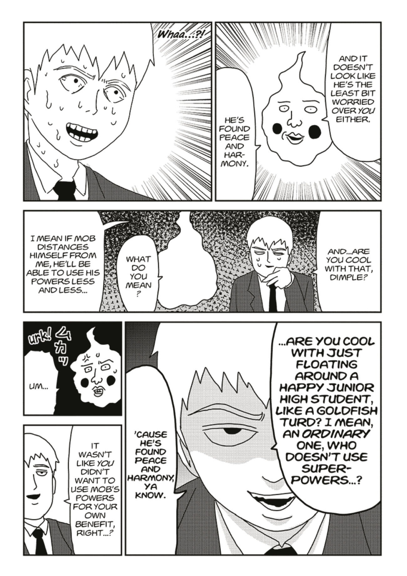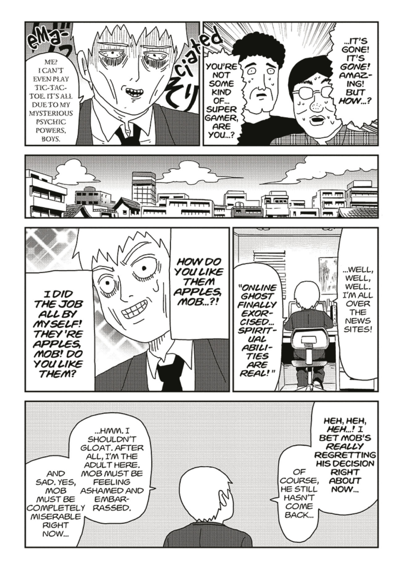 Even Mob has a social life . . . but Reigen's constant demands on his time are starting to seriously interfere with his friends and school. When Reigen carelessly suggests only he truly understands Mob, his disciple walks out on him! Now Reigen has to take a hard look at his own career, and decides the only way forward is to make his business legitimate--but that's going to be put to a tough test when the con artist exorcist is asked to cast out a spirit on national TV!