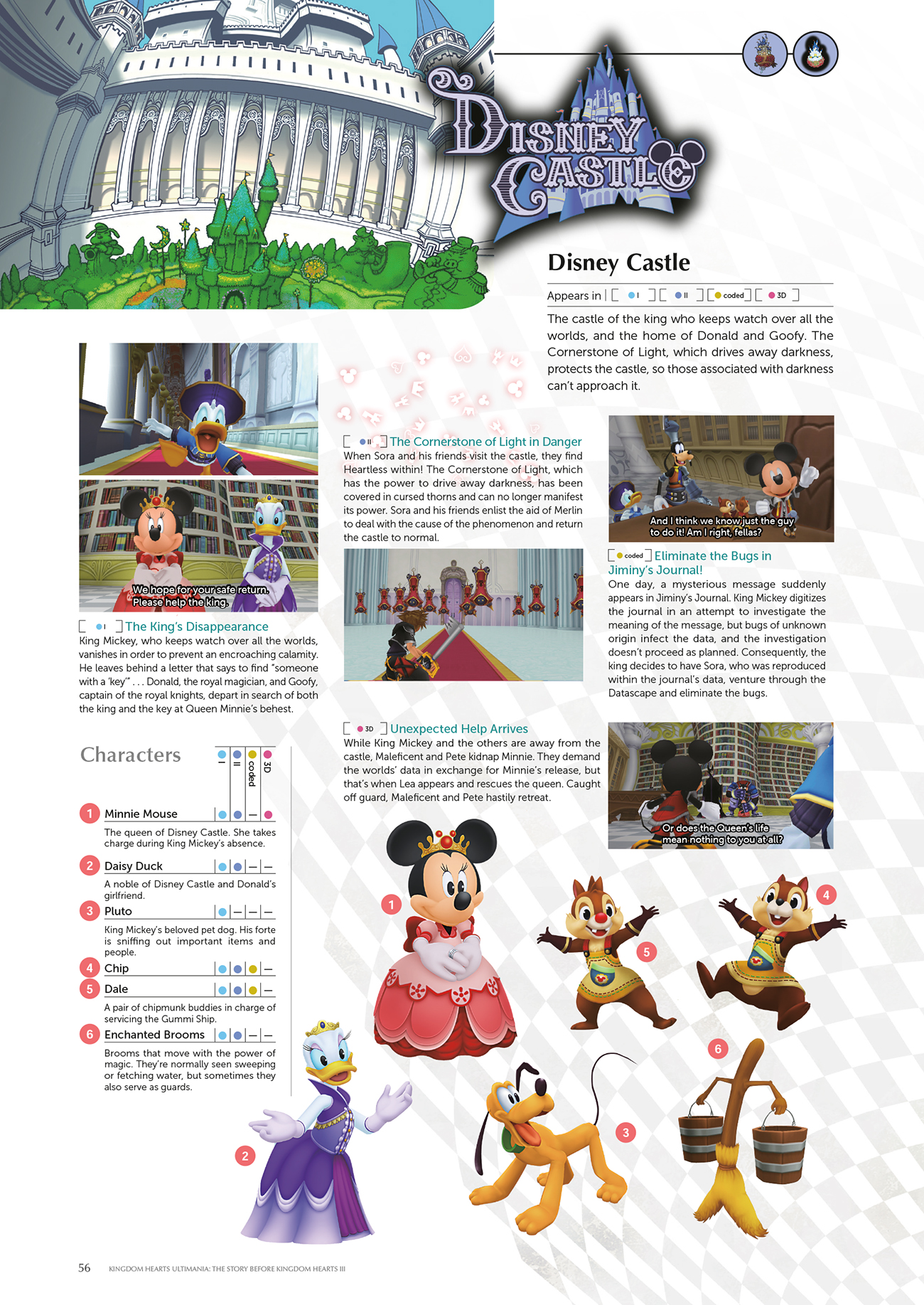 Enter the magical worlds of Disney as featured in the hit game series! This tome meticulously showcases each of Kingdom Hearts' unique worlds, characters, and equipment, encompassing all the games predating Kingdom Hearts III. Explore character profiles from icons like King Mickey and Goofy, to modern favorites like Tron or Captain Jack Sparrow. Study detailed summaries of each games story, along with rare concept designs and storyboards!