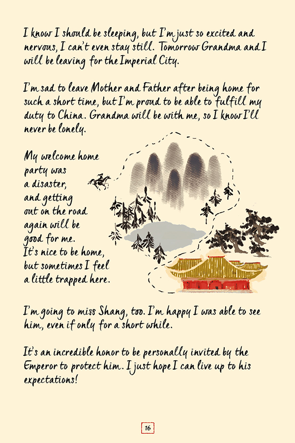 Follow the fearless hero on a quest to save China for the second time in a story that is interwoven with pages from Mulan's own journal. Mulan is undercover to protect the Emperor of China from an assassination attempt. When danger presents itself in the shadows and in plain sight, everyone is a suspect.