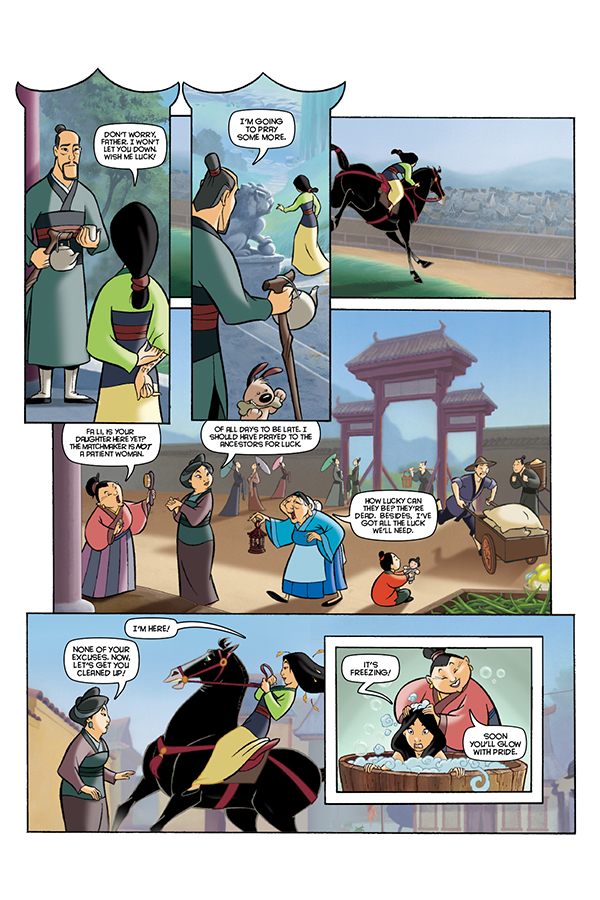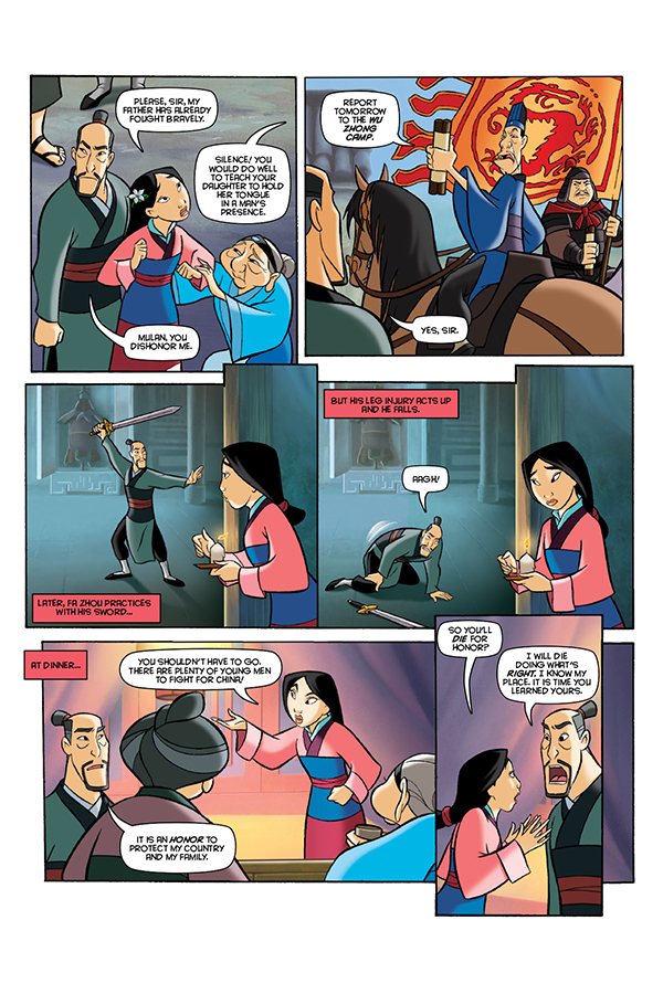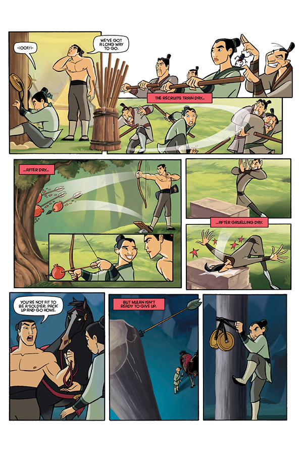 Venture to the Great Wall of China in the remarkable tale of bravery in this graphic novel retelling of the animated film, Disney Mulan. The Huns have invaded China. Mulan risks death and dishonor as she goes undercover as a man to defend her land and protect her father. With wit, strength, and determination, Mulan fearlessly enters the battlefield and goes head to head against the vicious leader of the Huns!