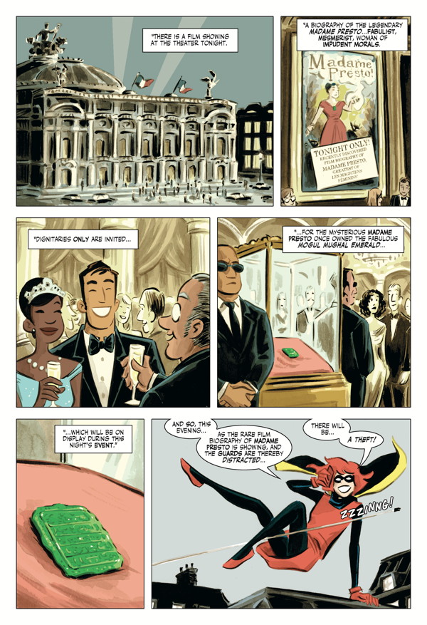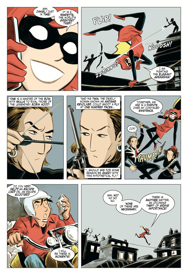 The greatest thief in all the lands, uncovers the greatest of all mysteries: a clue to the location of the legendary House of the Green Mask! But the sinister Voice has set his sights on the same treasure and sent a deadly assassin after the same secrets! Worse, he's stolen the one thing dearest to Bandette's heart. Now, shes after revenge! (And also chocolate.)