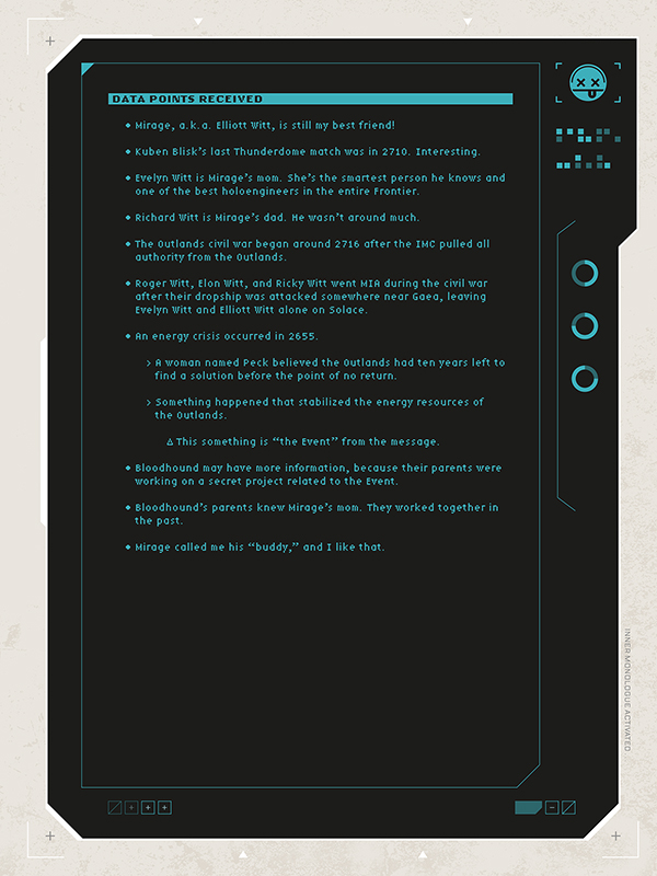 Explore the world of the hit game through the eyes of the lovable robot, Pathfinder, as he chronicles his journey throughout the various environs of the Outlands to interview his fellow Legends--all in the hope of finally locating his mysterious creator. The rich history of Apex Legends is explained by the characters that helped to shape it, as are their unique bonds of competition and camaraderie.