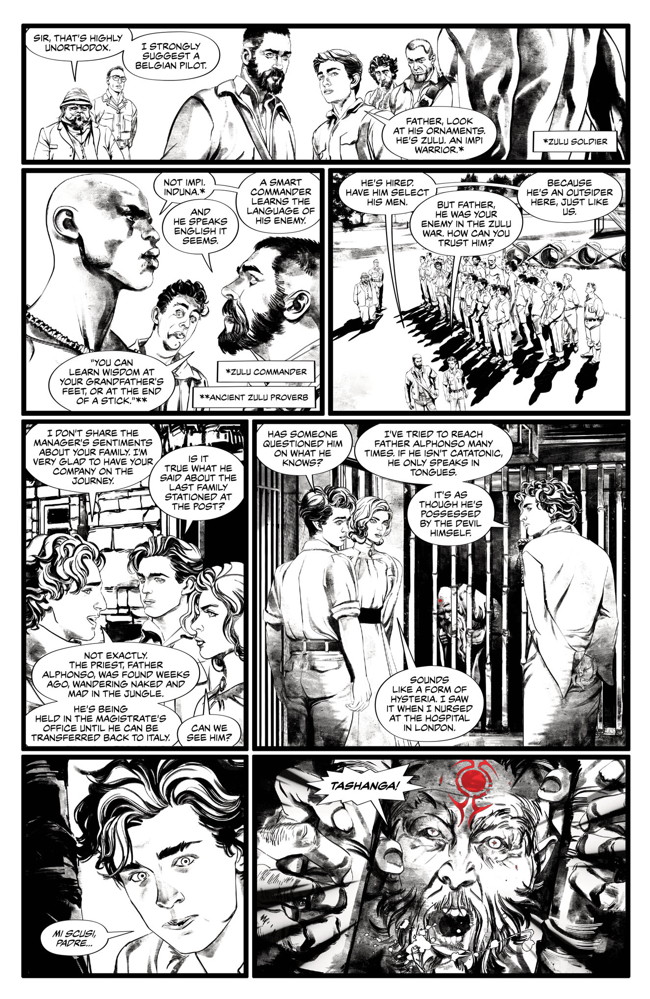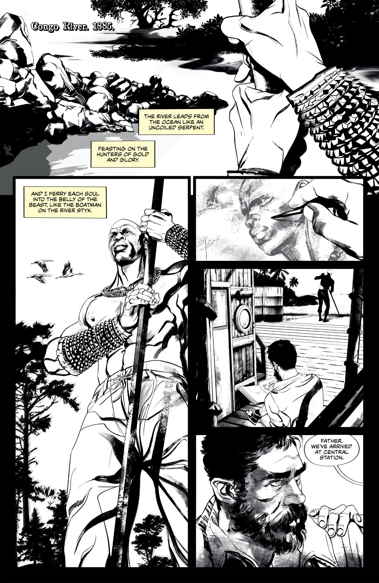Travel with Colonel Kurtz and his family as they enter the “heart of darkness” on a humanitarian mission for Belgian King Leopold’s Congo Free State, opening a trading post in the uncharted interior of the Congo jungle to help promote free trade and abolish slavery in the region. With the help of a local tribe, they establish the post, but to survive in this lawless land, they must contend with murderous slave traders, corrupt officials, psychotic explorers, cannibalistic tribes, and the most dangerous threat of all: a primordial evil dwells deep within the jungle, whose origins and mythology date back to the womb to civilization, perverting minds and corrupting souls, while preying on the worst instincts of humanity. The locals speak of this insidious malevolence in fearful whispers, calling it “The Horror.”