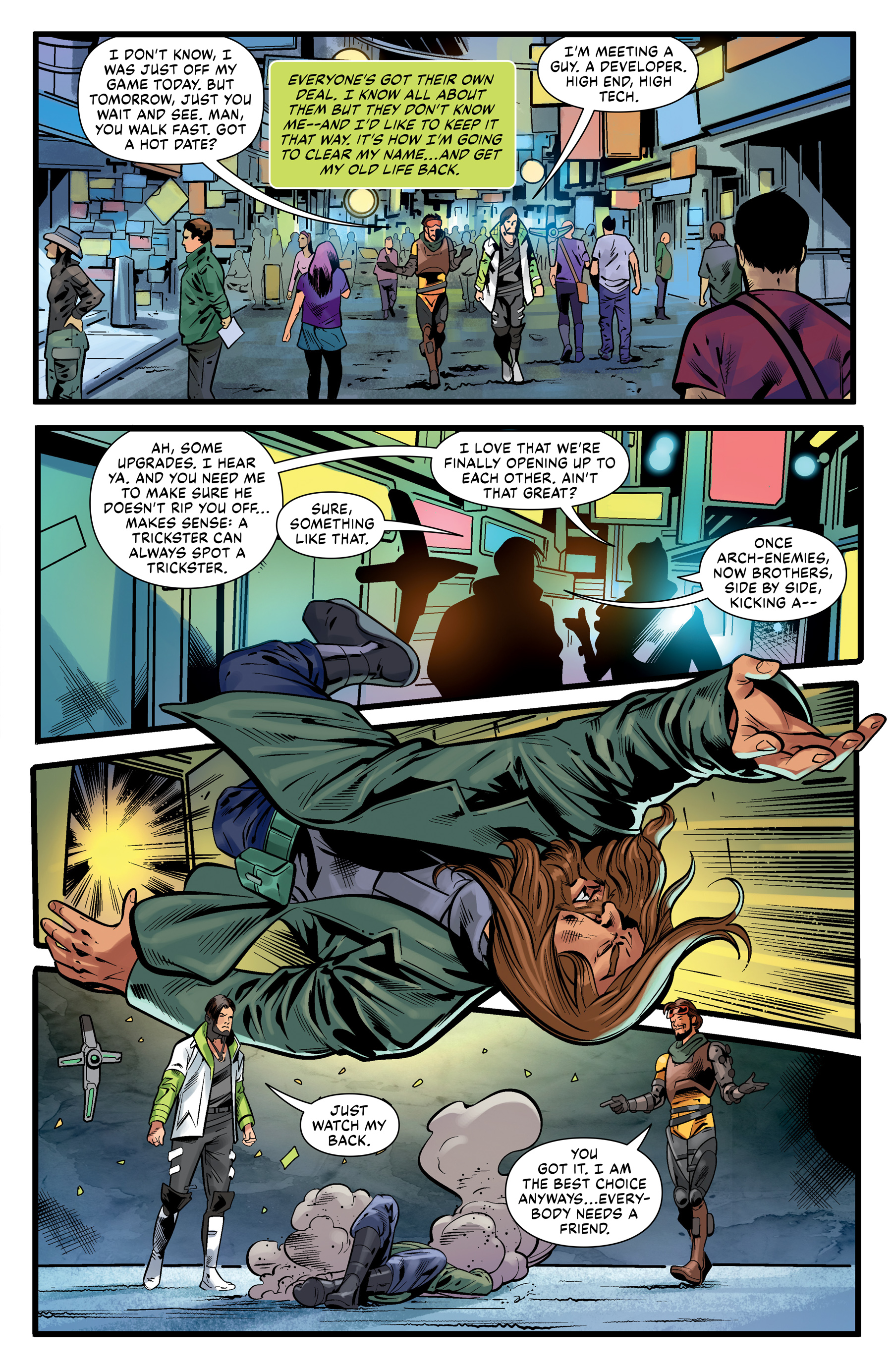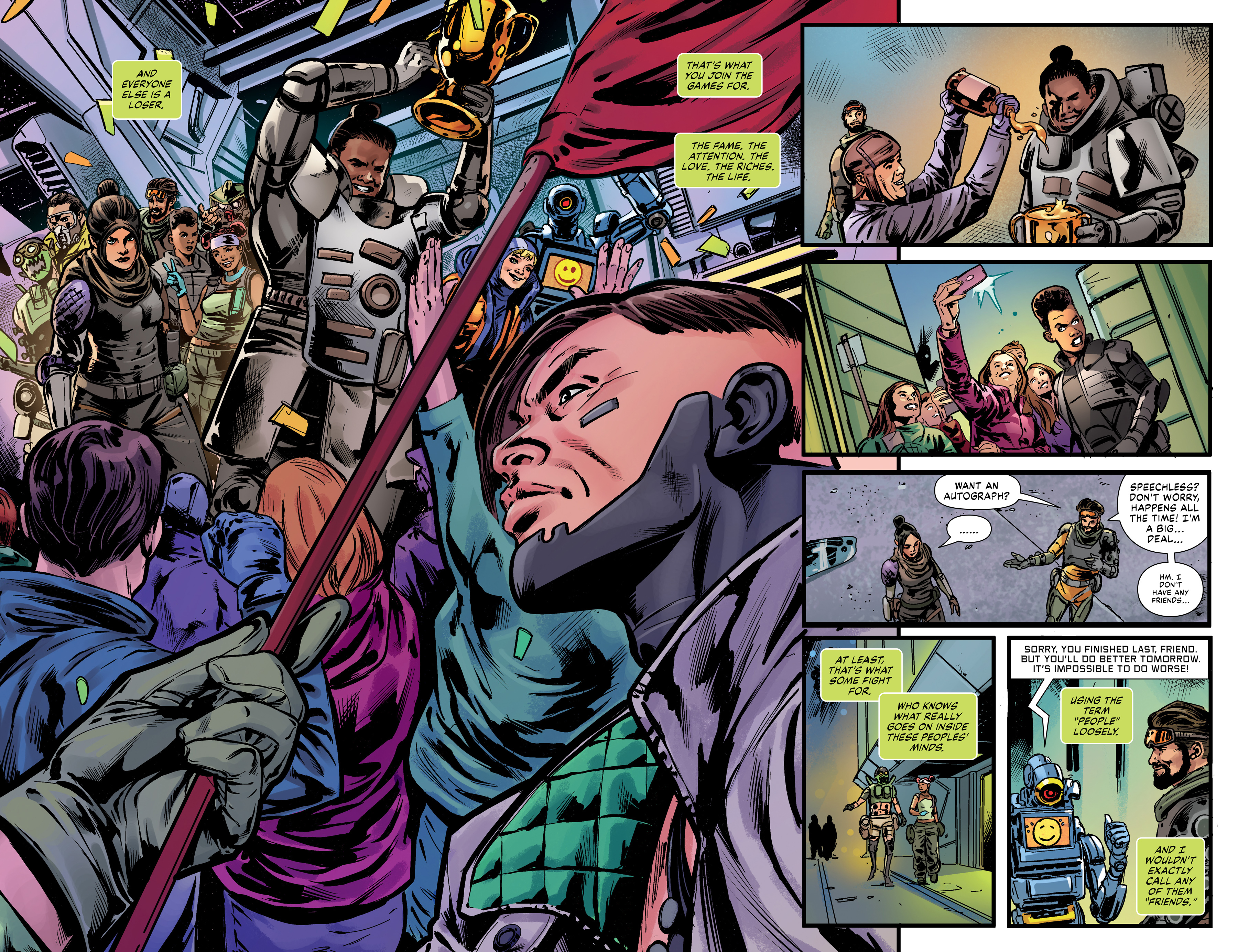 The legends from the battle royale video game find themselves pulled together to rescue the city from Mad Scientists, brutal assassins, and the sudden and sinister grip of The Syndicate, a corrupt cabal attempting to "fix" arena outcomes in their favor. Will the legends hold up to their celebrity status and be the heroes Solace needs?