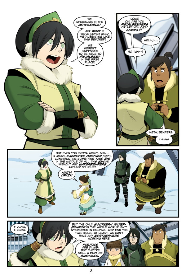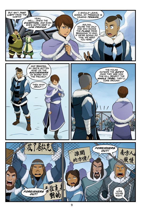 When Katara and Sokka return home to the Southern Water Tribe, they are shocked to find that it has gone from a small village to a bustling city! Malina, a Northerner, is behind the change and plans to unify the Water Tribes, but Gilak, a Southerner, leads a fierce rebellion to stop her. In the face of these two opposing tribes, Katara will have to make peace with her nostalgia and mistrust to save the home she loves from being permanently torn apart.