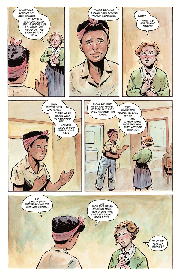 Fresh off the loss of her goblin friend to a strange portal, Bernice must weigh her responsibilities as protector of Harrow County with her desire to get her companion back safe and sound. But the past weighs heavily and the fair folk use Bernices use her memories against her.