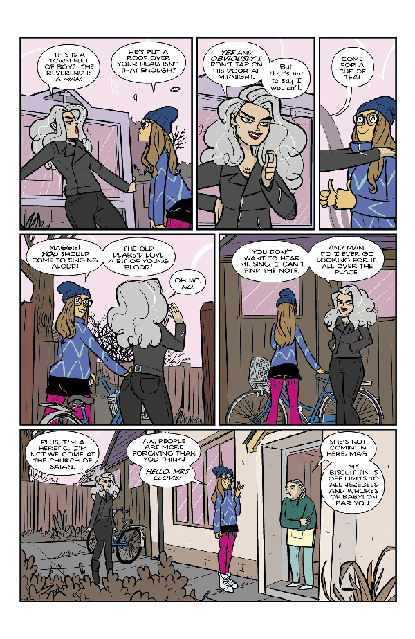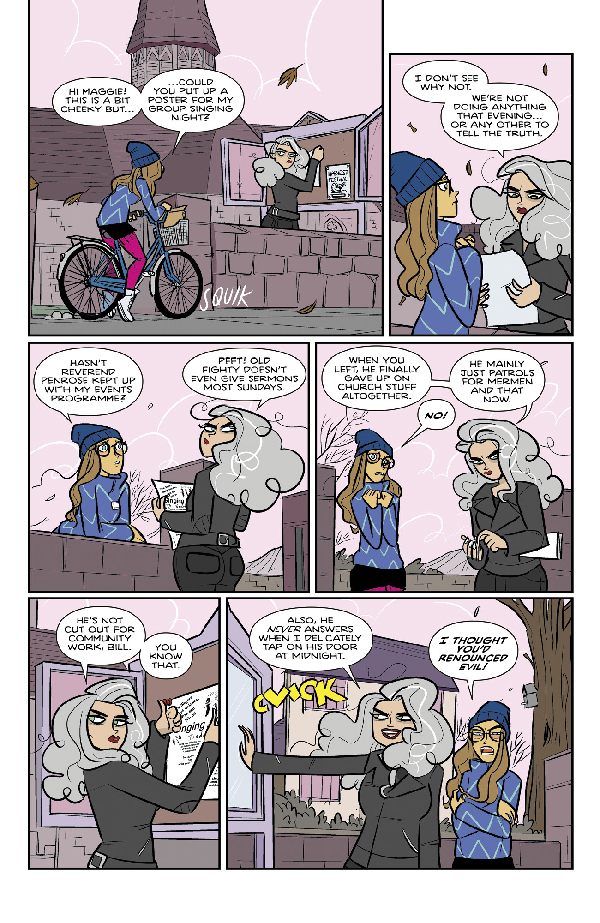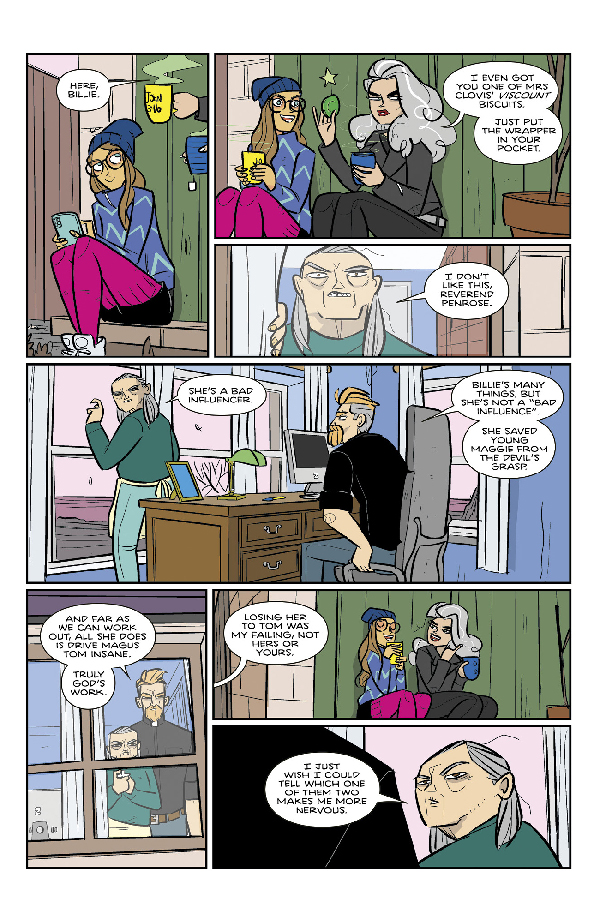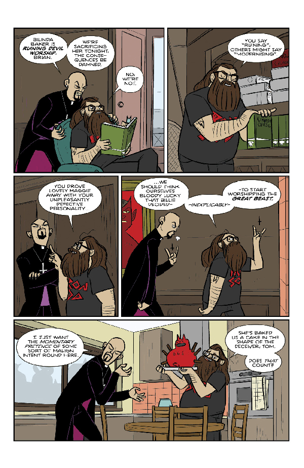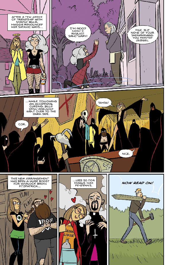 Former curate Billie has moved on to a new path...as a priestess in the Church of Satan. Meanwhile, her friend Maggie has made a similar switch--from Satanist to church-bound do-gooder.