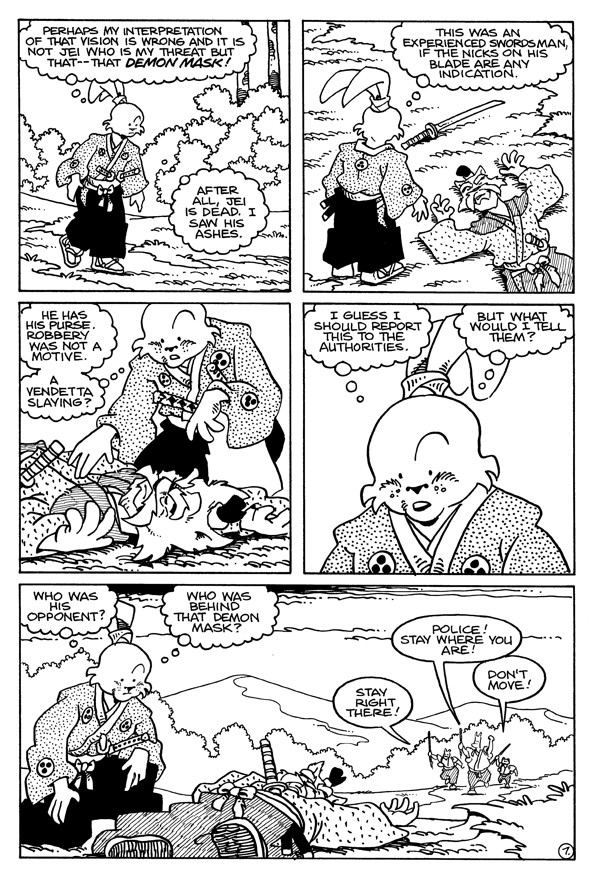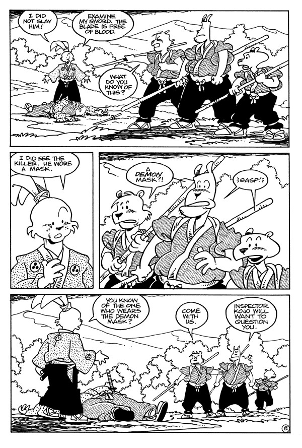 Usagi faces a new foe who wears a demon mask, the Eisner-winning ''Grasscutter'' storyline receives a sequel, pickpocket Kitsunes history is revealed, Sasuké the Demon Queller makes his debut, and an ally long thought dead returns!